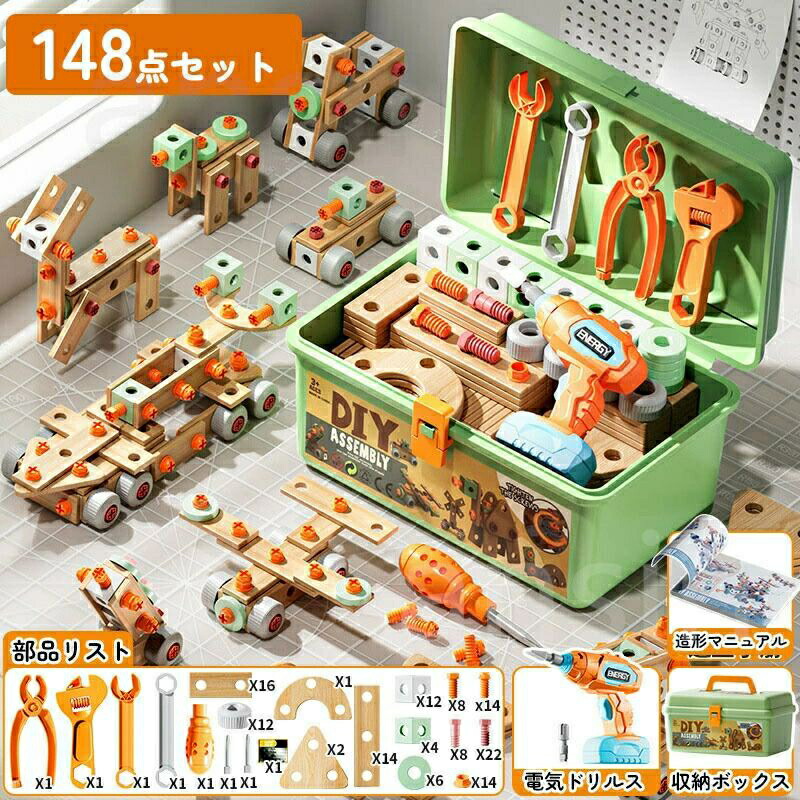 電動ドリルおもちゃ ねじ 工具おもちゃ おもちゃ ままごと ごっこ遊びトイ 大工さん 45%Off 121点セット 124点セット 145点セット 148点セット