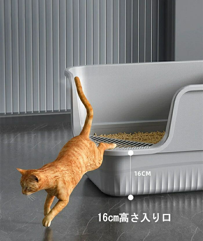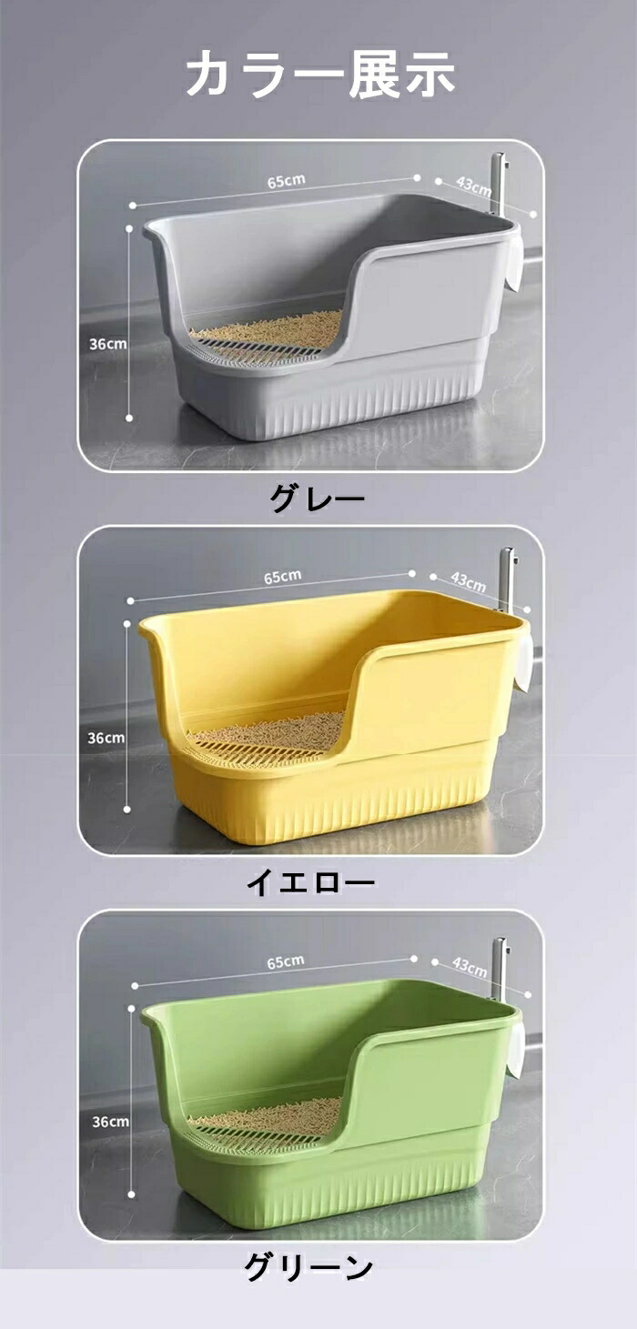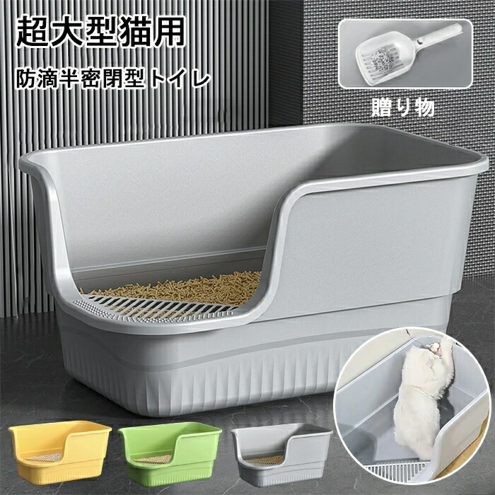 超大型猫用 防滴半密閉型トイレ オープ ペット ペットグッズ 新作 グレー イエロー グリーン
