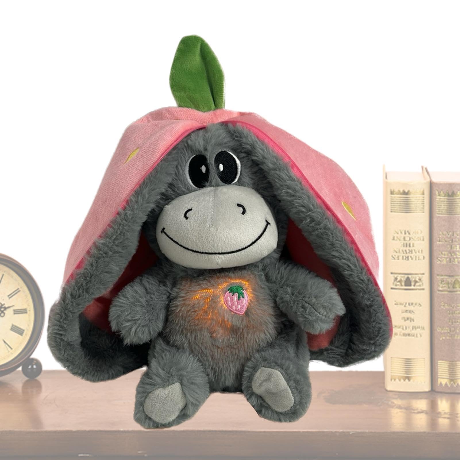 呼吸するロバ、 - フルーツロバのぬいぐるみ | ミュージカルライトとリズミカルな呼吸の動きを備えたなだめる寄り添う動物のぬいぐるみ、家庭用旅行用の子供用コンパニオンおもちゃ