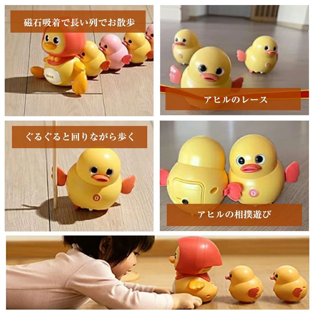 アヒル親子のおもちゃ:アヒルの体には磁石がついているので、長い列を作って進んだり、ハイハイのかわいい赤ちゃんのおもちゃの練習を手伝ったりします!アヒルの子には7号電池が2本、アヒルママには5号電池が3本必要です、お客様ご自身でご用意ください、ドライバーをプレゼントします。