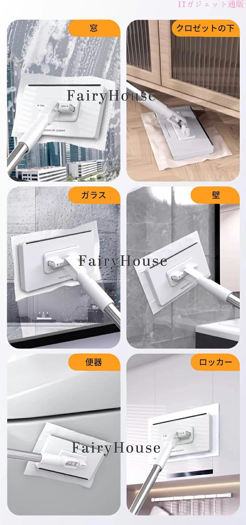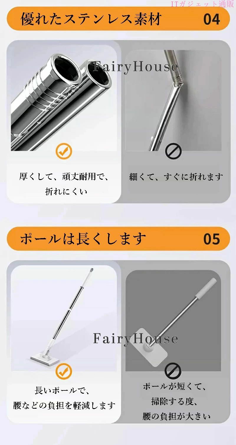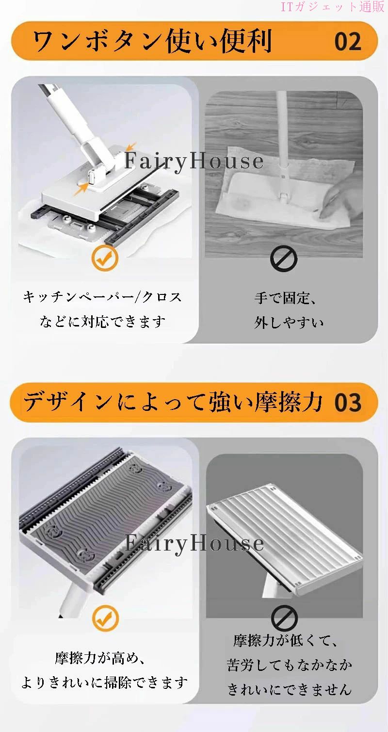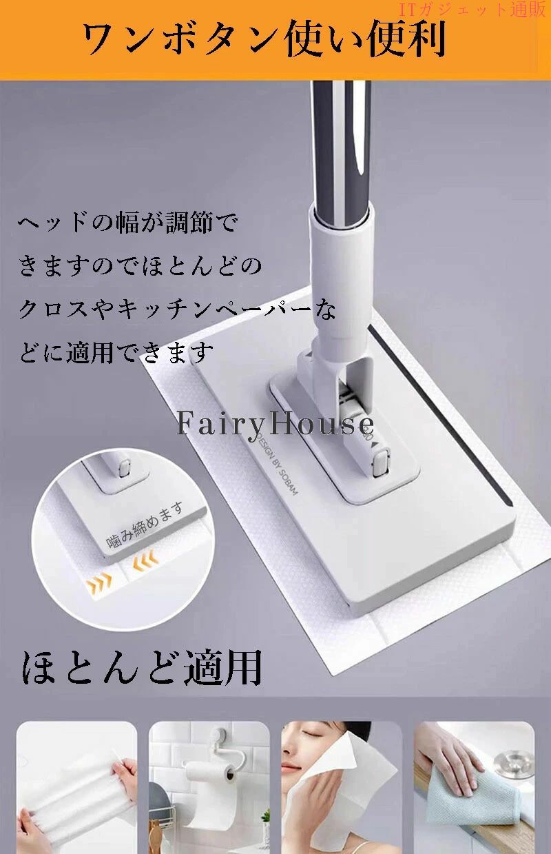 乾湿両用モップ 自動で雑巾を挟むモップ 掃除用品 モップ 特集 ホワイト【74cm】 ホワイト【95cm】