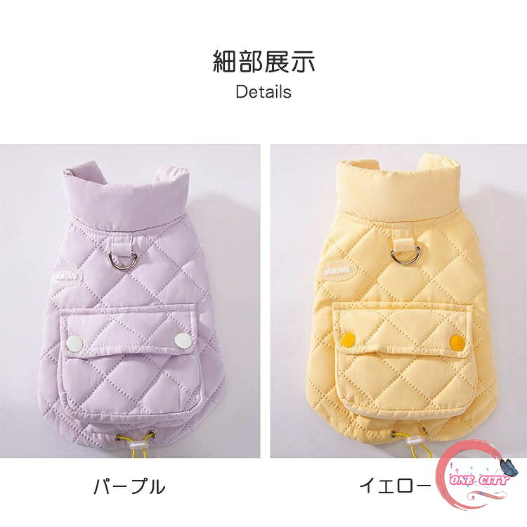 ペット服 犬用 猫用 ダウンベスト風ジ ペット ペットグッズ 豊富な品揃え パープル イエロー XS(約1~2kg) S(約1.5~2.5kg) M(約2.5~4kg) L(約4~5.5kg) XL(約5.5~7.5kg) XXL(約7.5~10kg)
