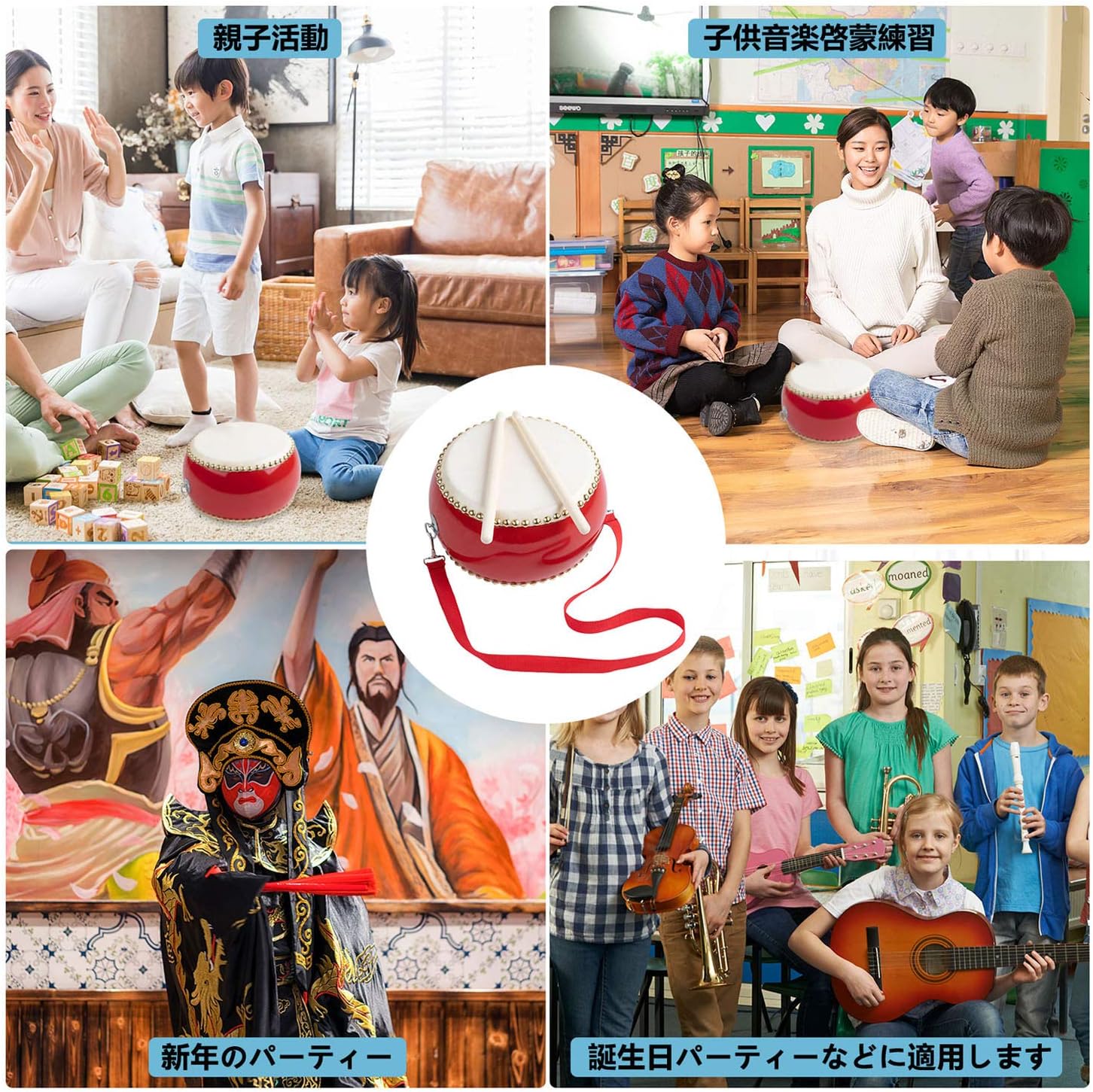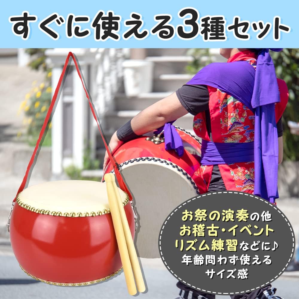和太鼓セット 牛皮張 首掛けストラップ 3インチ 5インチ 6インチ 7インチ 8インチ 9インチ 10インチ