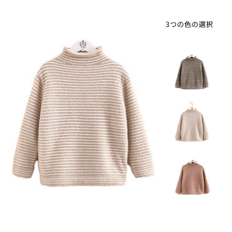 裏起毛セーター キッズ 秋冬 ボーダー キッズ トップス セーター 35%Off オレンジ ベージュ ブラック 110 120 130 140 150