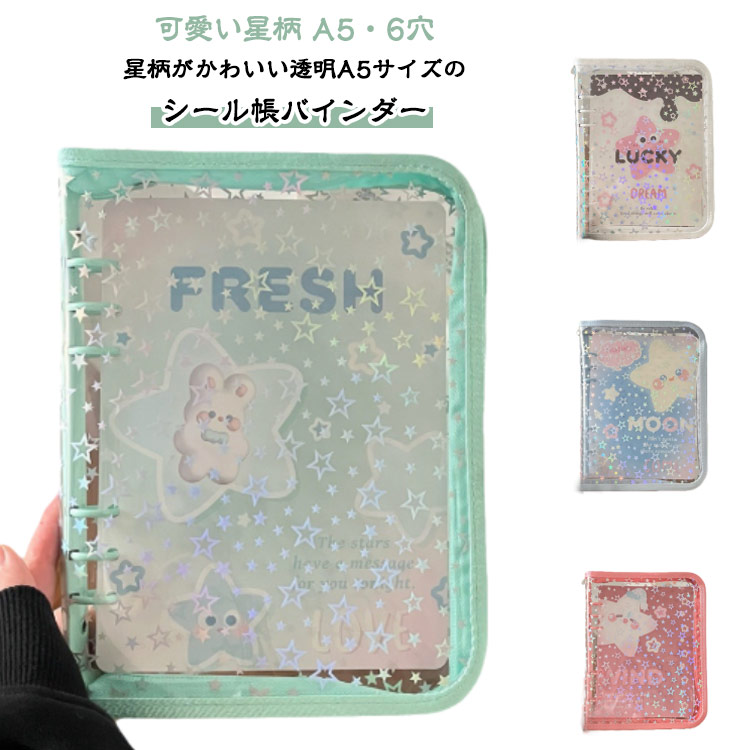 シール台紙 バインダー 6穴 星柄 手 文房具 事務用品 手帳 ノート システム手帳 続々入荷中 ブラック ホワイト ピンク1 パープル グリーン1 グリーン2 ブルー1 ブルー2 ピンク2 イエロー 透明リフィル60枚 虹色リフィル40枚 星柄リフィル40枚 花柄リフィル40枚 ハート柄リフィル40枚