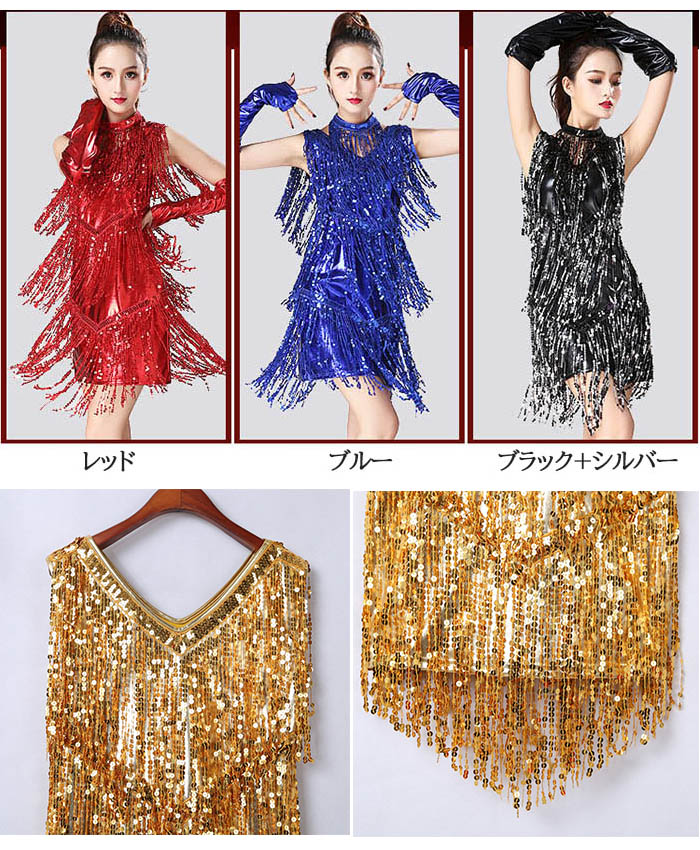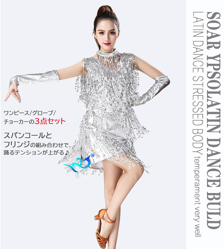 ワンピース チョーカー グローブの3点 体操 ダンス 社交ダンス ウェア 特集 ブラック レッド ブルー パープル グリーン ゴールド シルバー ピンク ブラック+シルバー M L XL