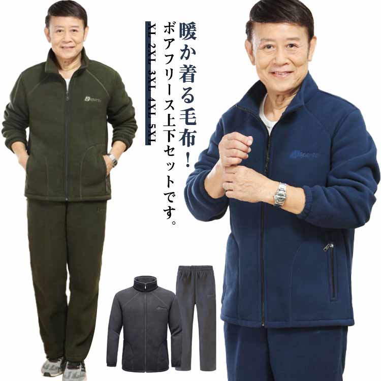 ボアフリースセットアップメンズ上下セッ インナー 下着 ナイトウエア 豊富 グレーセット ブルーセット グリーンセット XL 2XL 3XL 4XL 5XL