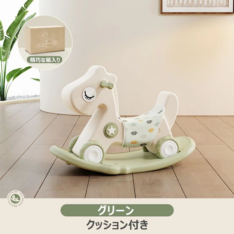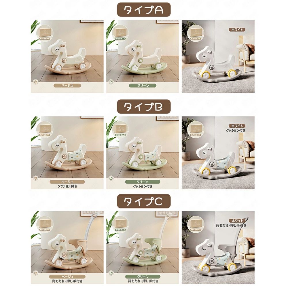 子供ロッキングホース 四輪車兼用 1- おもちゃ 乗用玩具 三輪車 乗用玩具 木馬 動物 期間限定割引クーポン ホワイト ベージュ グリーン タイプA タイプB タイプC