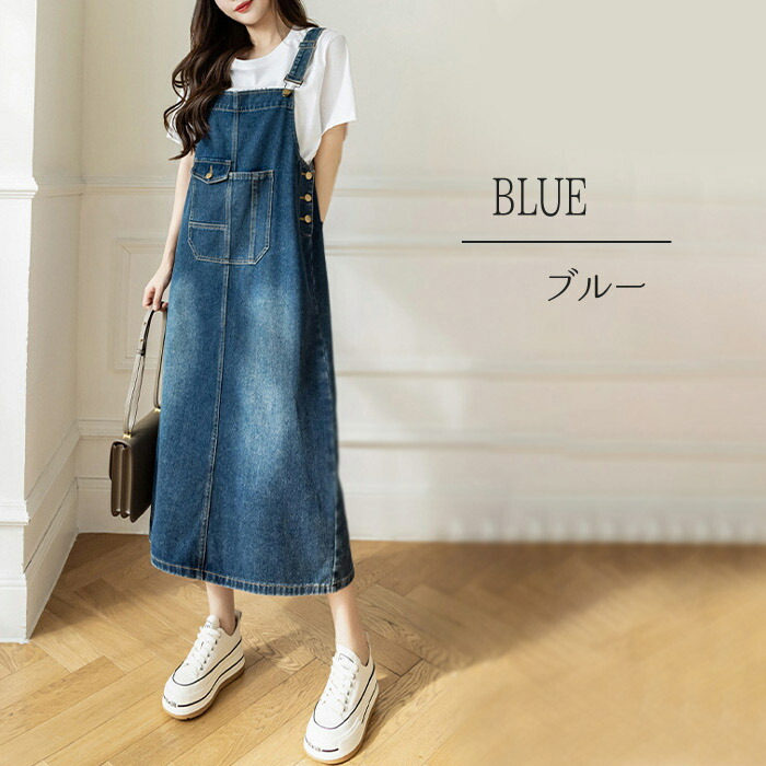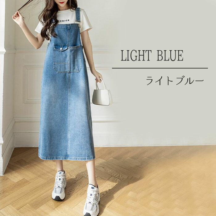 ジャンパースカート デニム サロペット ライトブルー ブルー ダークグレー S M L XL 2XL 3XL