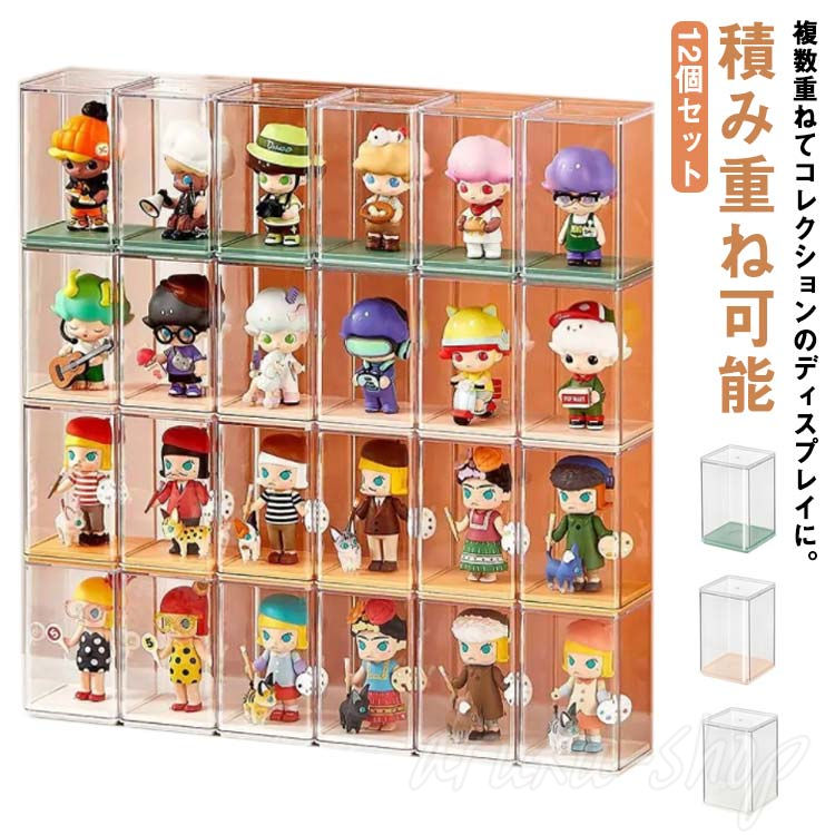 12個セット フィギュアケース アクリ ホビー 人気 グリーン大 ピンク大 ホワイト大 イエロー大 グリーン小 ピンク小 ホワイト小 イエロー小