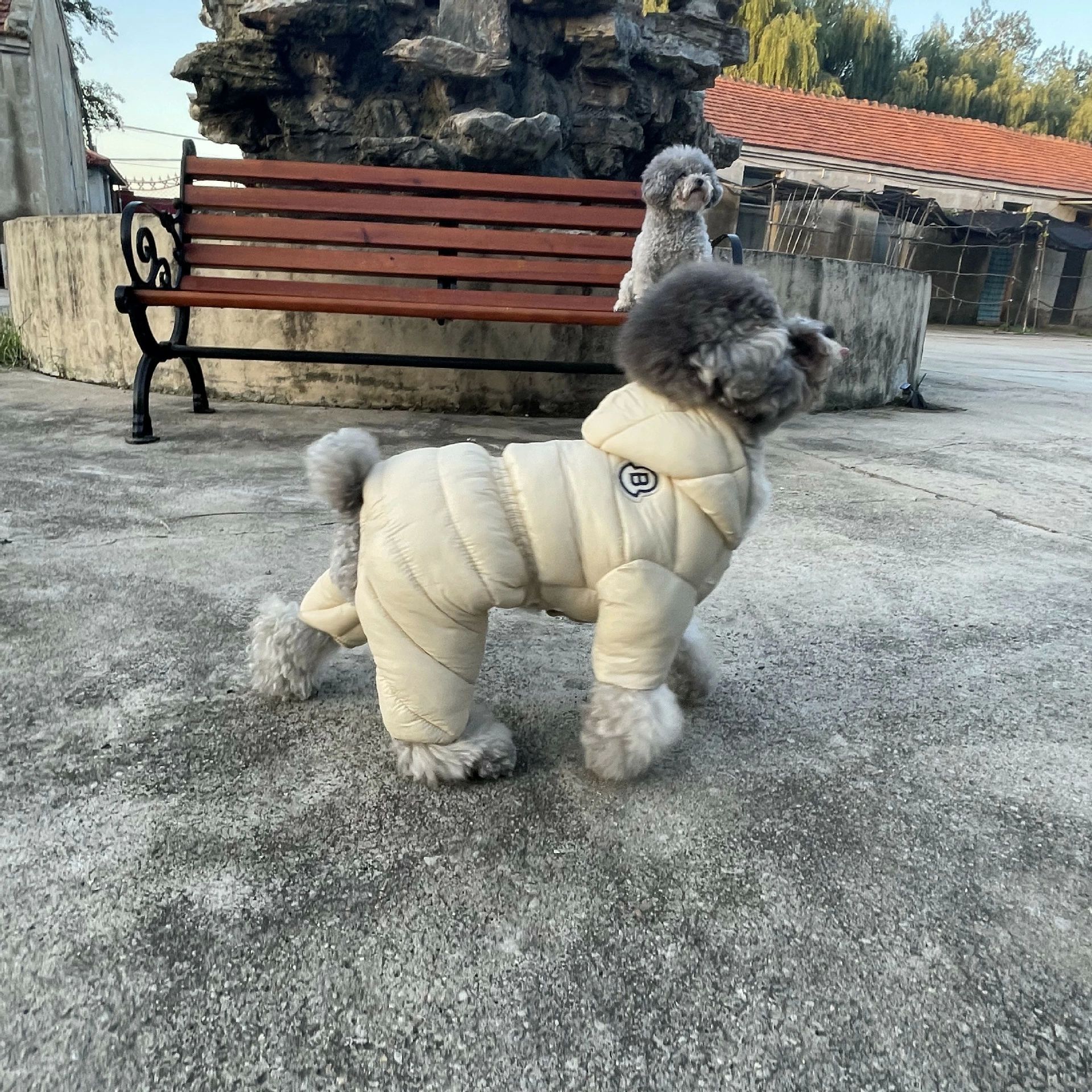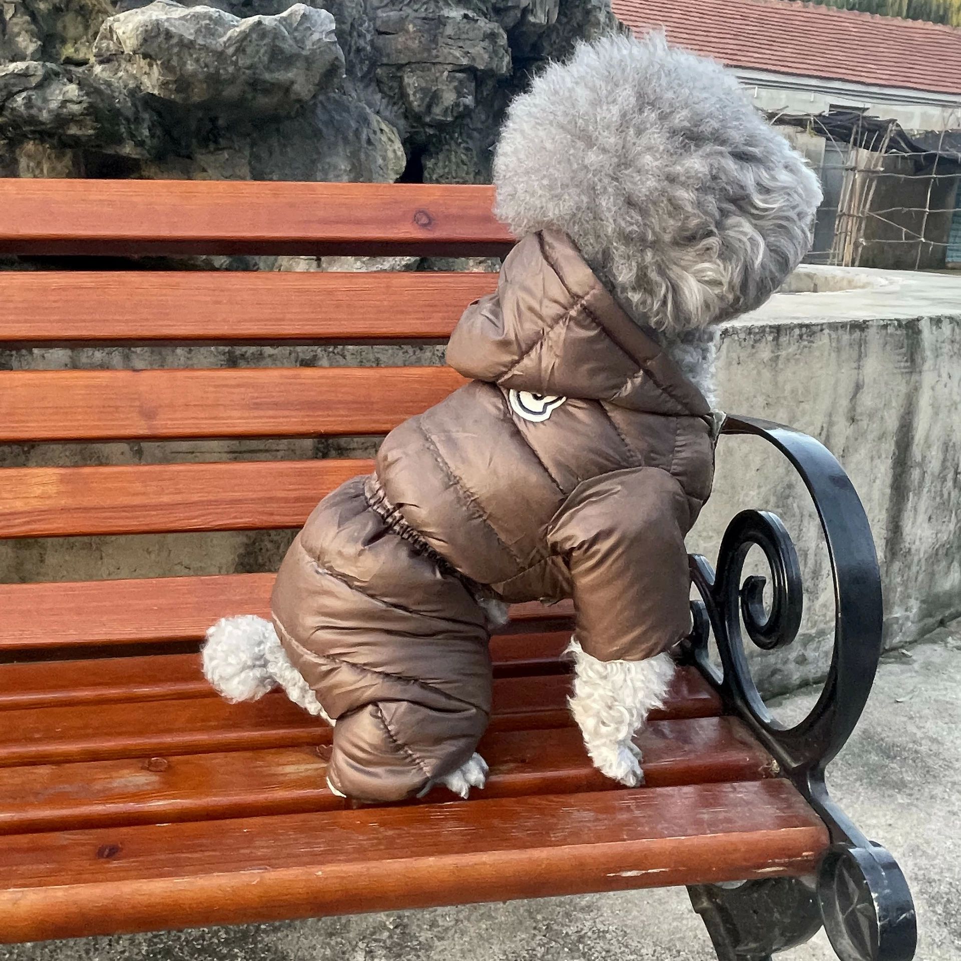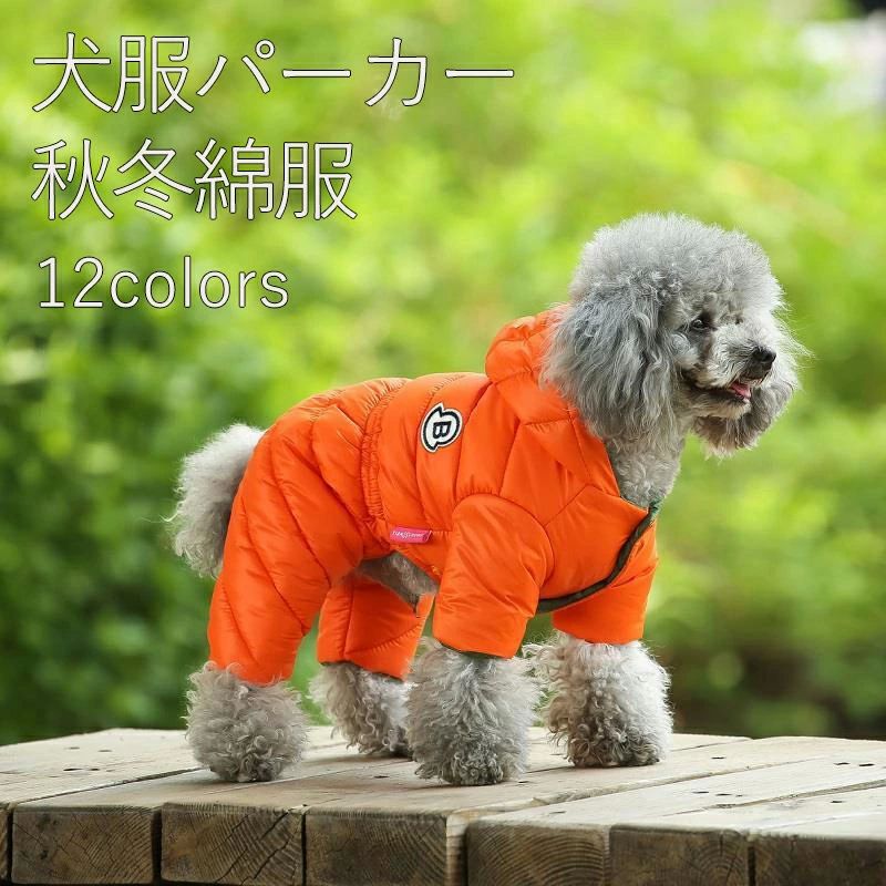 四つの足 フード付き 綿服 コート ダウンジャケット ペット服 ドッグウェア ロンパース 防寒 パーカー つなぎ 秋冬 あたたかい