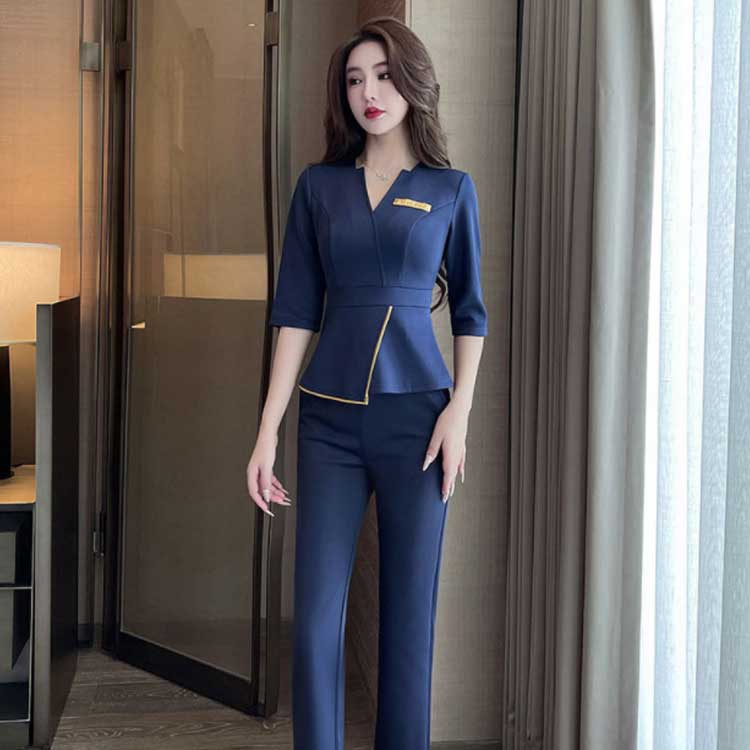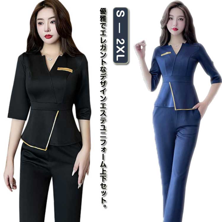 ユニフォーム 美容 トップス 制服 七 ブラック ネイビー S M L XL 2XL