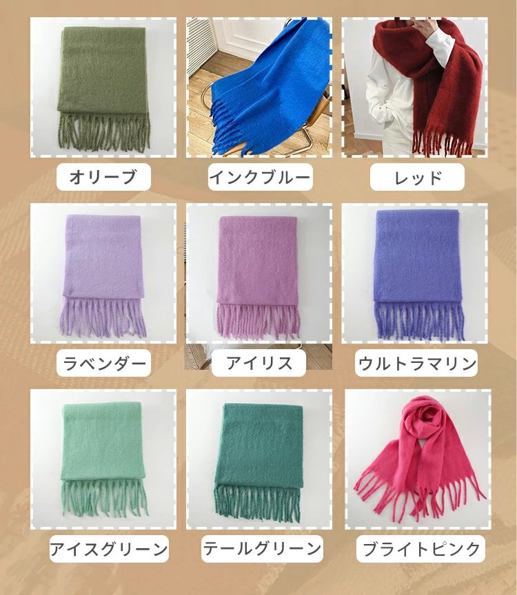 冷房対策 可愛い 柔らか 暖かい 大判 マフラー スカーフ レディースマフラー ストール 通販 アイボリー ピンク イエロー シアン ブルー マリンブルー グレー キャメル ブラウン ローズ グリーン ブラック インクブルー レッド ラベンダー アイリス ウルトラマリン アイスグリーン テールグリーン オリーブ ブライトピンク