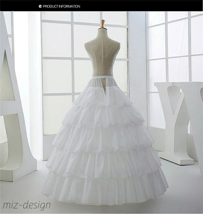 白ロングパニエ パニエ ドレス用 白 4本ワイヤー入り 5段 チュール インナー ペチコート ロング丈 ブライダル ロング用