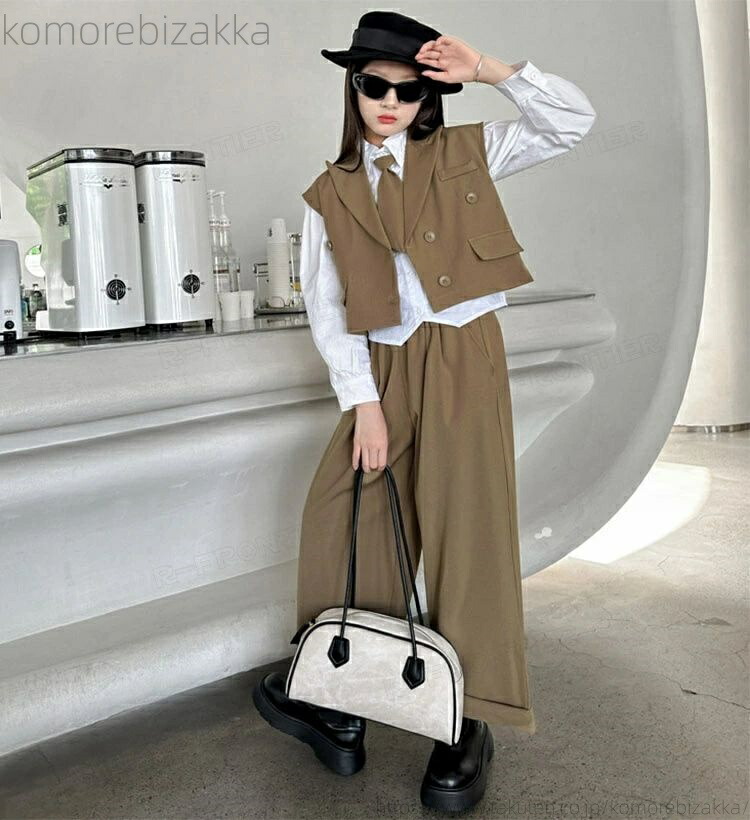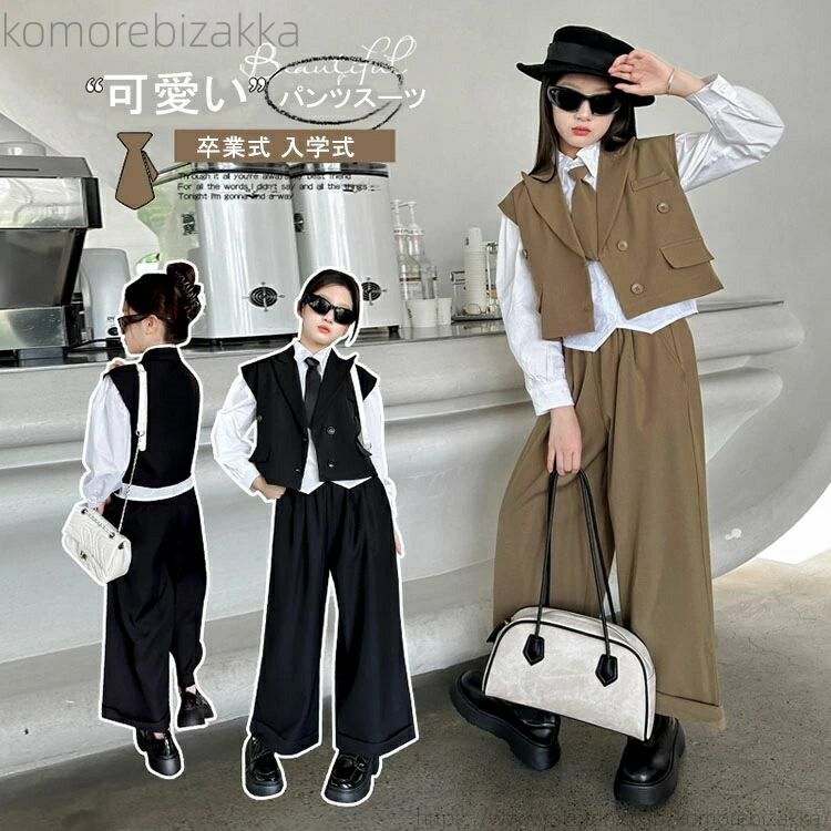 スーツ 女の子 160 卒業式 小学校 キッズ ベビー マタニティ 豊富 ベスト+パンツ(ブラック) ベスト+パンツ(ブラウン) ブラック3点セット ブラウン3点セット 120 130 140 150 160 170