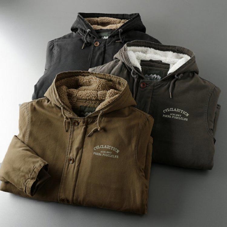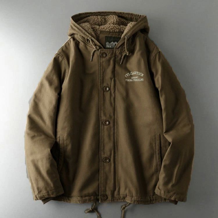 アウトド アメカジ ゆったり 秋冬 暖か 厚手 フード付き ボタン ジャケット アウター 裏ボア ツイル生地 裏起毛 メンズ コットン