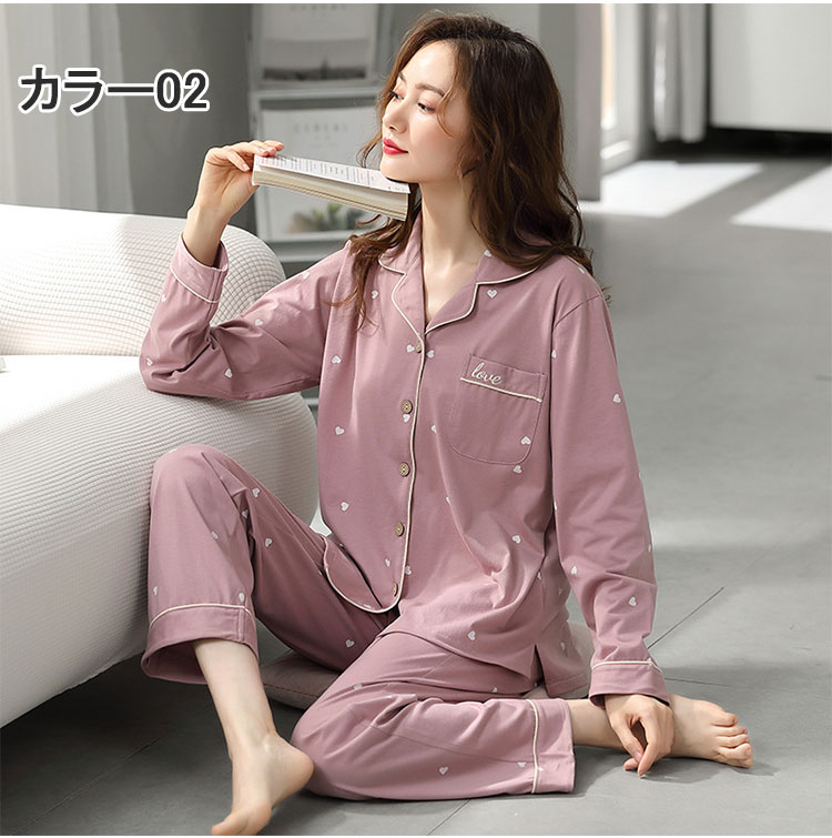 前開き 長袖パジャマ 大人 寝巻き レ レディース ナイトウェア ルームウェア パジャマ 続々登場 カラー01 カラー02 カラー03 カラー04 カラー05 カラー06 カラー07 カラー08 M L XL 2XL 3XL