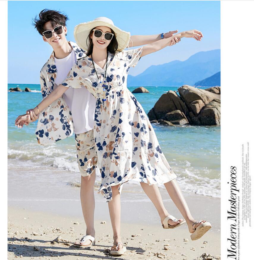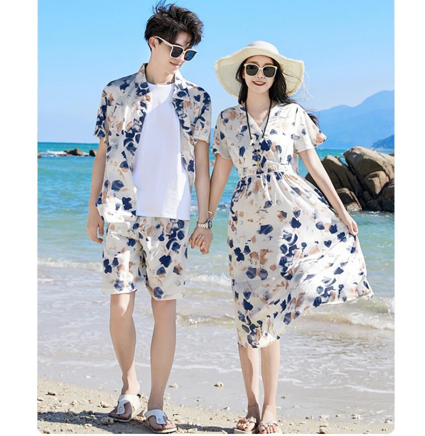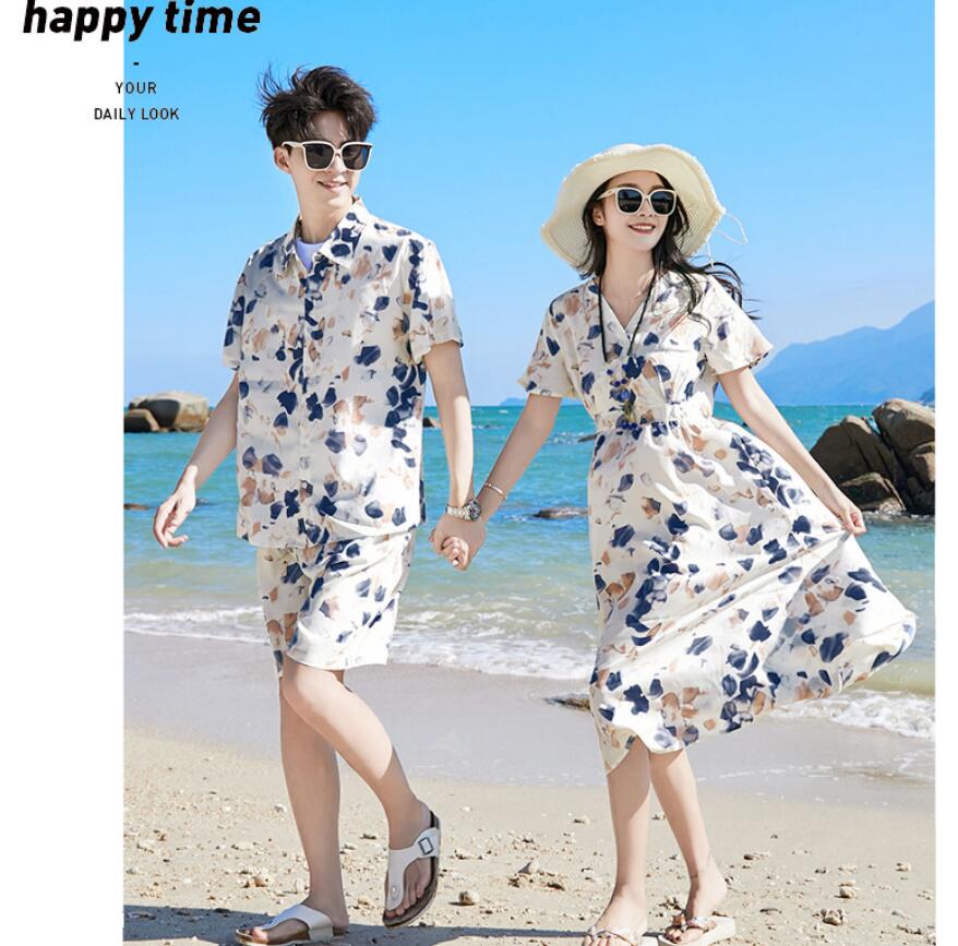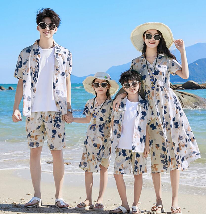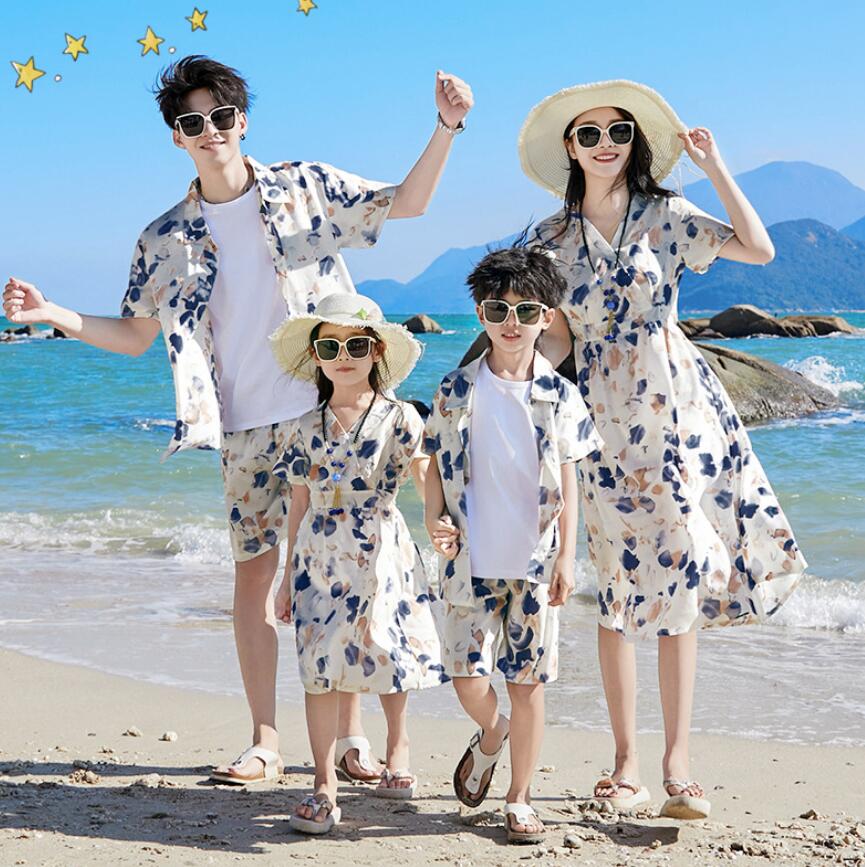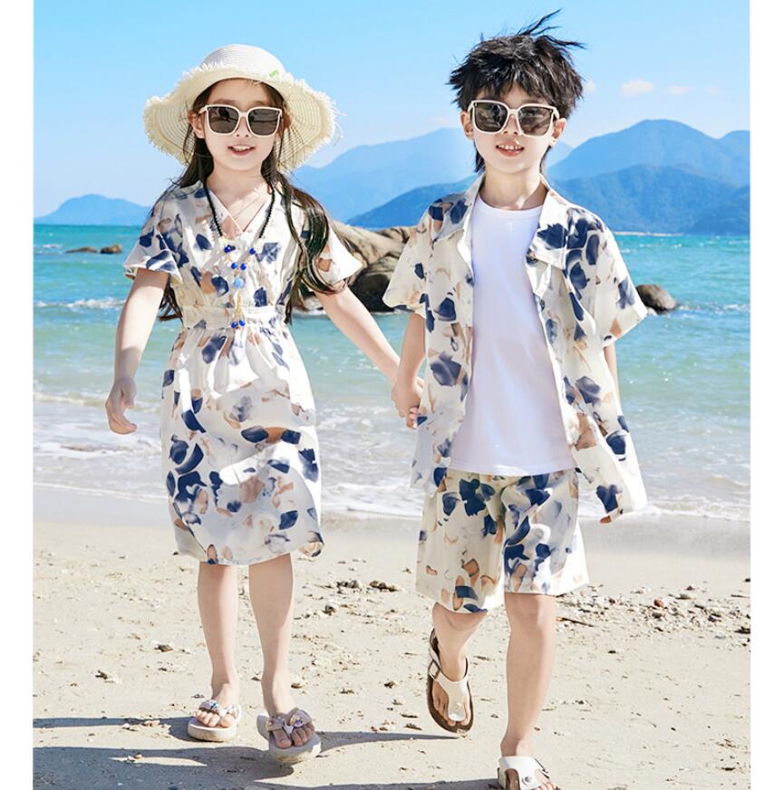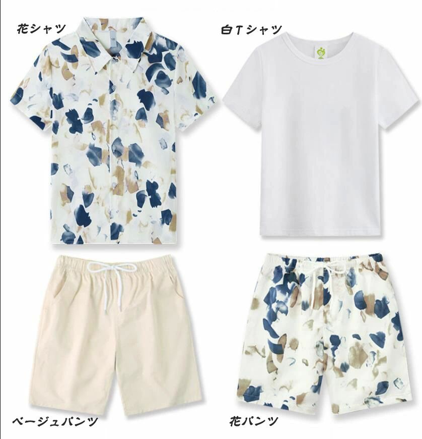 リゾー ドレス リンクコーデ 旅行 ハ 白Tシャツ 花シャツ ベージュパンツ 花パンツ ワンピース 花シャツ+花パンツ上下セット 90 100 110 120 130 140 150 160 S M L XL 2XL 3XL 4XL