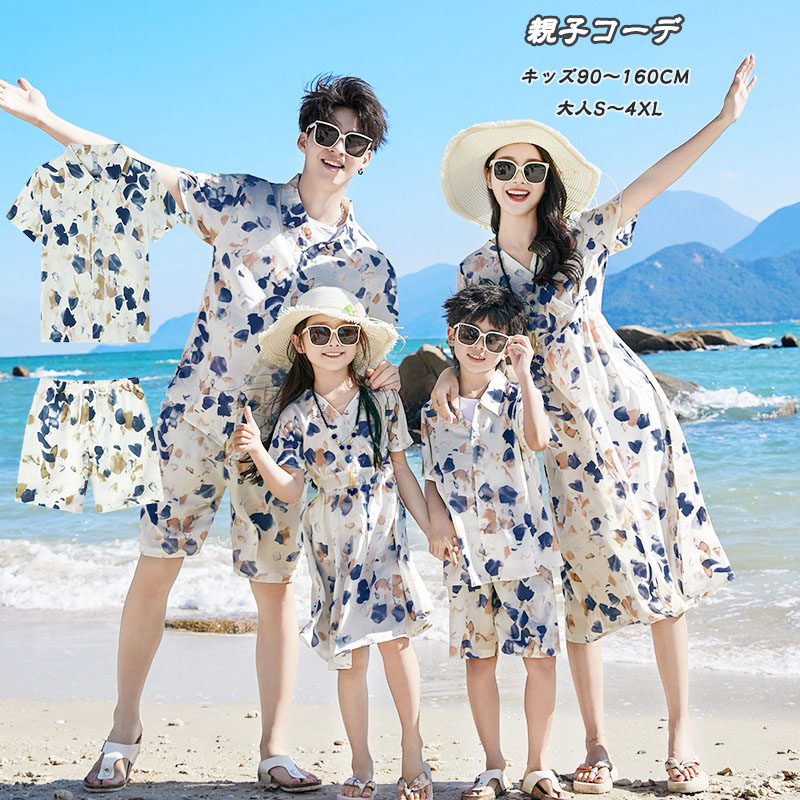 リゾー ドレス リンクコーデ 旅行 ハワイ 親子ペア ペアtシャツ ショートパンツ アロハシャツ 花柄 夏服 ペアルック ワンピース