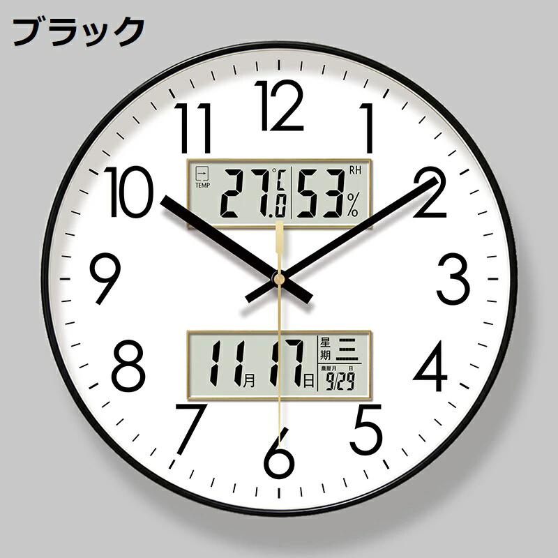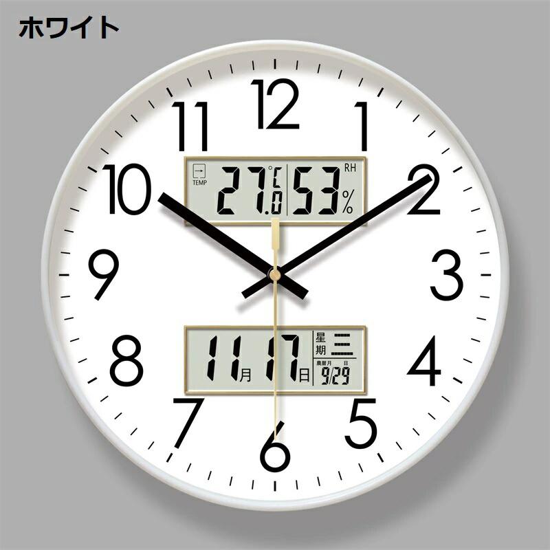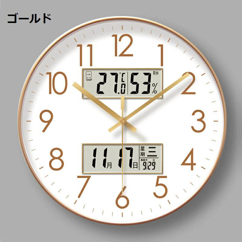 温度計 電波時計 連続秒針 静音 壁掛 ブラック【10インチ】 ゴールド【10インチ】 ホワイト【10インチ】 ブラック【12インチ】 ゴールド【12インチ】 ホワイト【12インチ】 ブラック【14インチ】 ゴールド【14インチ】 ホワイト【14インチ】