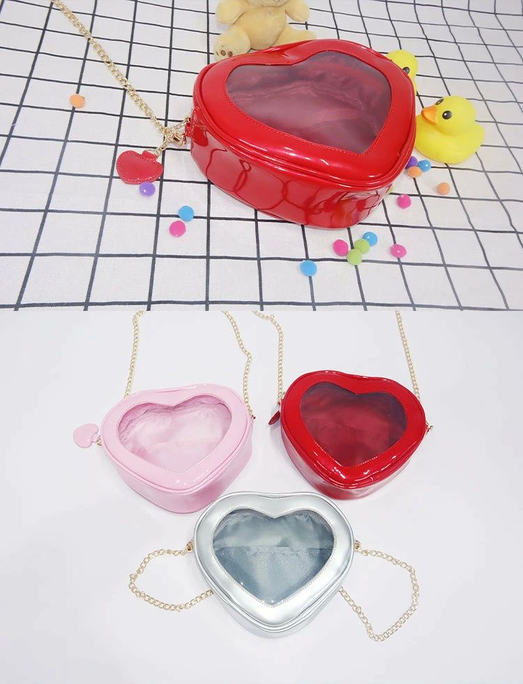 推し ぬいぐるみ クリアバッグ 透明窓 バッグ 小物 ブランド雑貨 新作 シルバー ピンク レッド