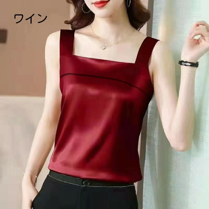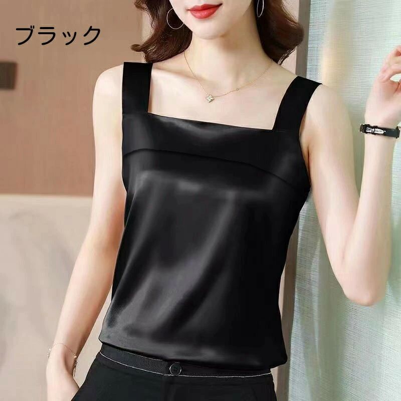 ブラ サテン調 Vネック ラウンドネッ トップス キャミソール 特集 ブラック ホワイト グリーン ブルー ワイン シャンパン M L XL 2XL 3XL 4XL
