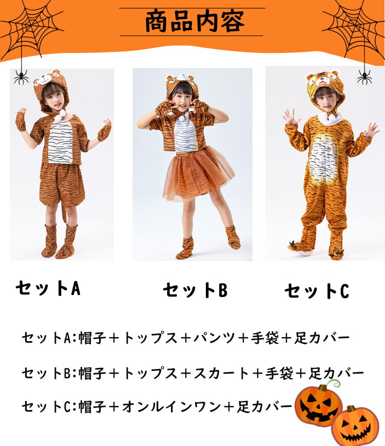 ハロウィン 衣装 虎 着ぐるみ コスプ コスプレ 変装 仮装 着ぐるみ 期間限定ポイントUP! セットA セットB セットC 110cm 120cm 130cm 140cm 150cm 160cm