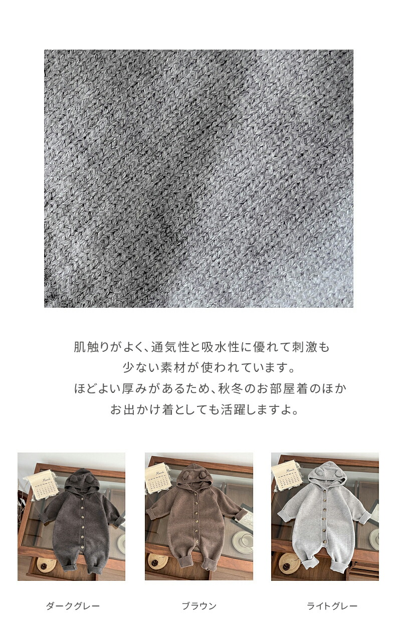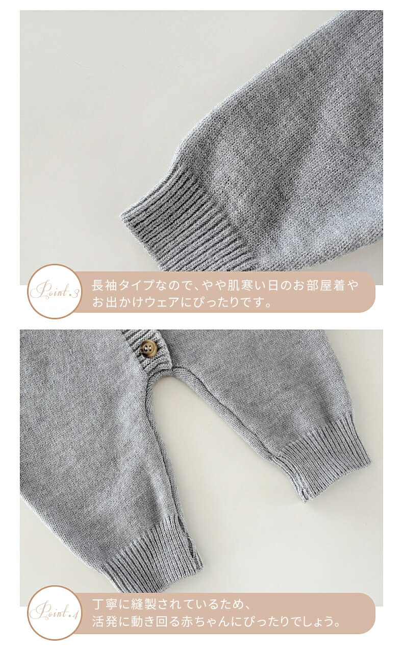 ロンパース 長袖 男の子 女の子 冬 ベビー ベビー服 ファッション カバーオール ロンパース 特集 ライトグレー ブラウン ダークグレー 66cm 73cm 80cm 90cm 100cm