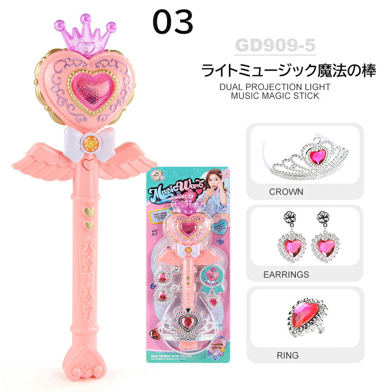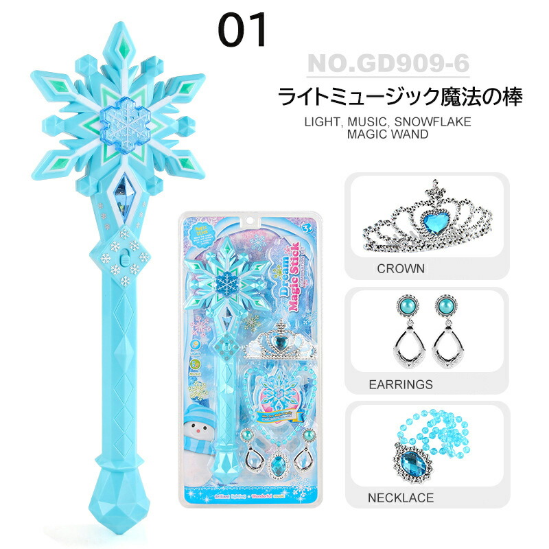 プリンセス アクセサリー 4点セット コスプレ用 女の子 飾り おもちゃ 子供 ティアラ 魔法のステッキ 魔法の杖 ネックレス イヤリング 髪飾り ハロウィン お姫様ごっこ 音声付き 変身