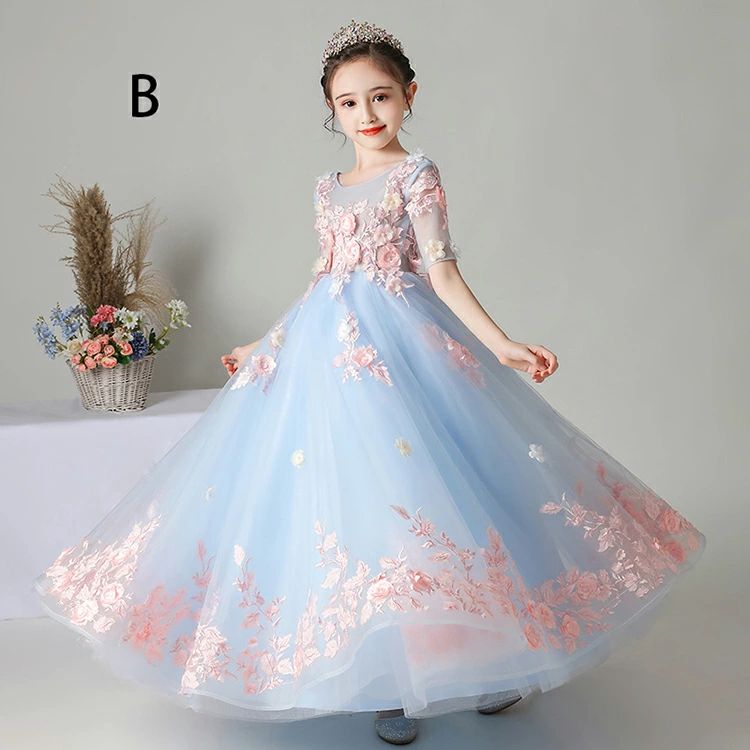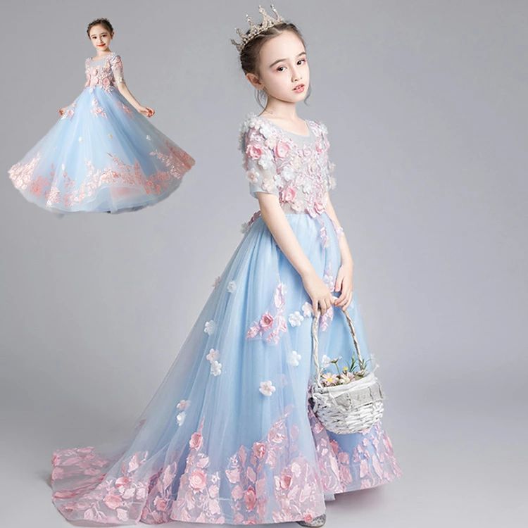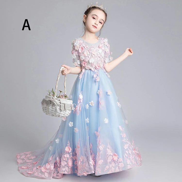 80cm-160cm フラワーガール 演奏会 発表会 結婚式 ドレス 子供 パーティードレス フォーマルドレス 刺繍柄