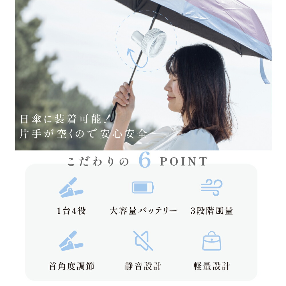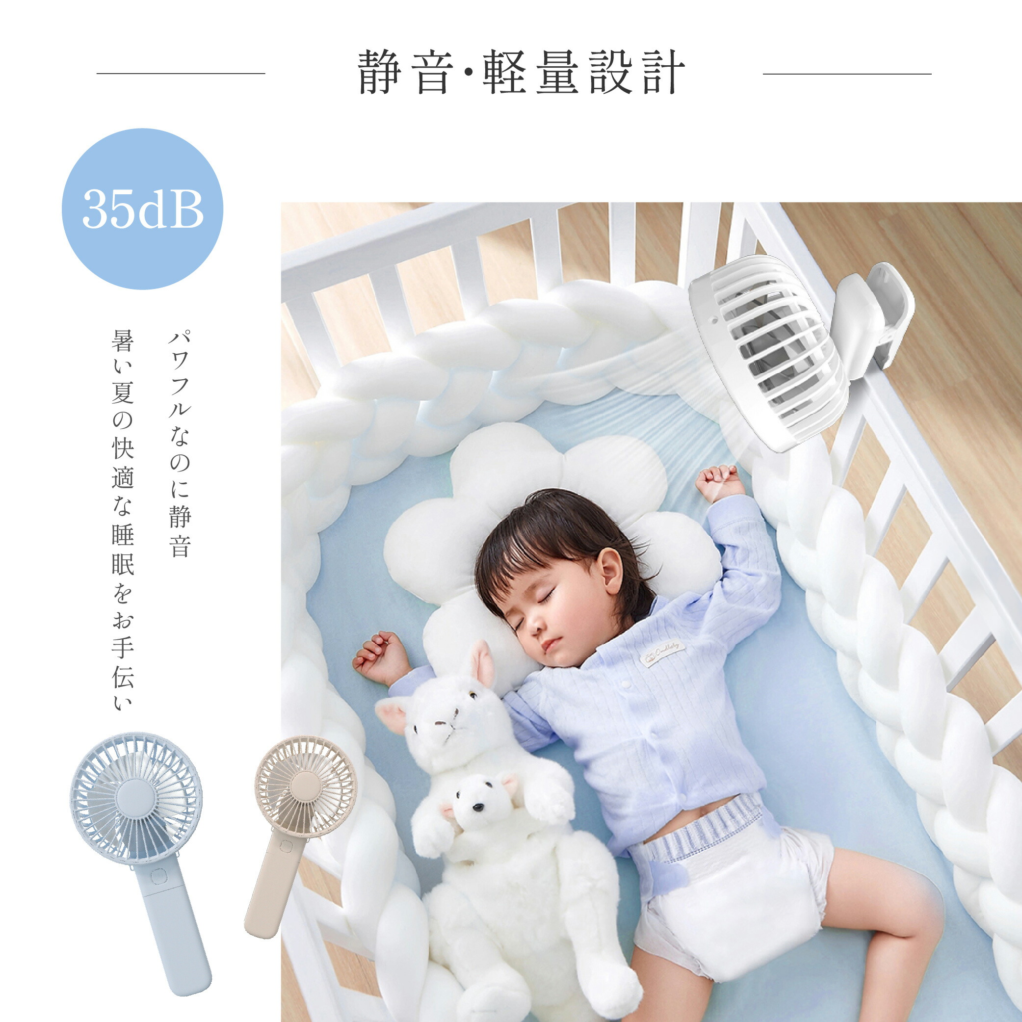 ハンディファン 静音 可愛い 充電式扇 ホワイト アイボリー アイスブルー