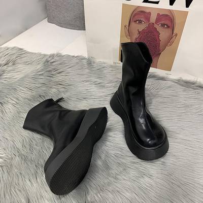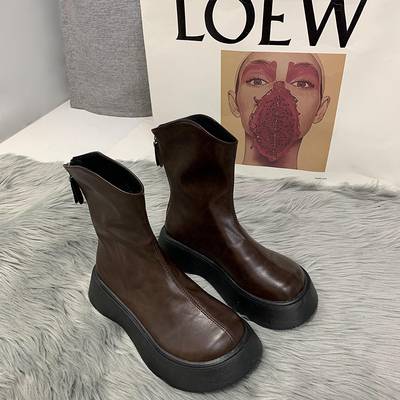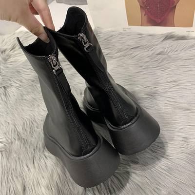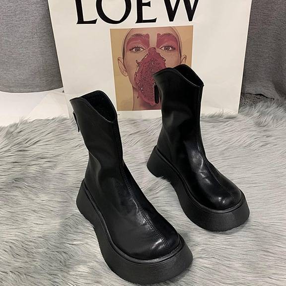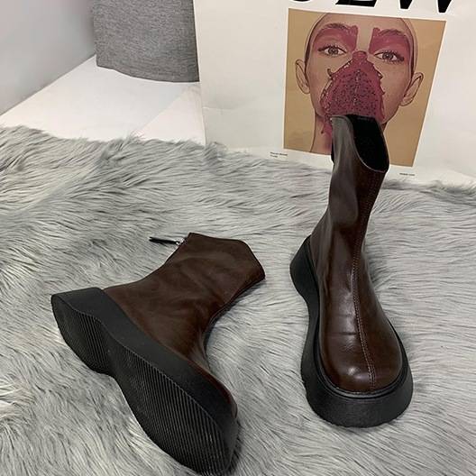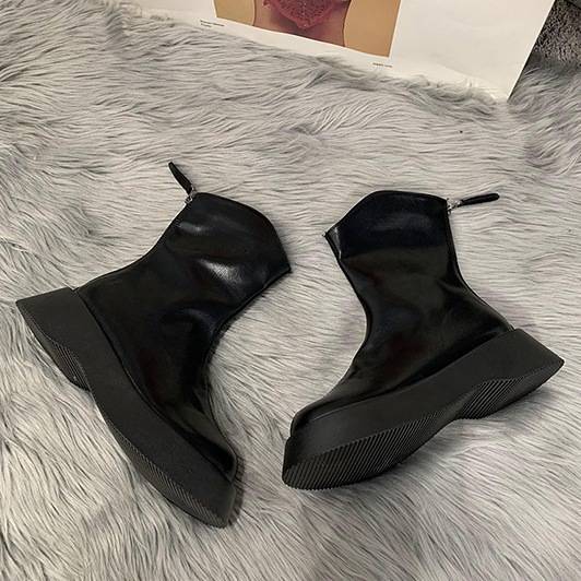 ショートブーツ 5cmヒール 厚底 ラウンドトゥ フラット 歩きやすい 履きやすい 走れる 防水 撥水 柔らかい シンプル カジュアル お洒落 かっこいい スポーティー メンズライク マニッシ レトロ