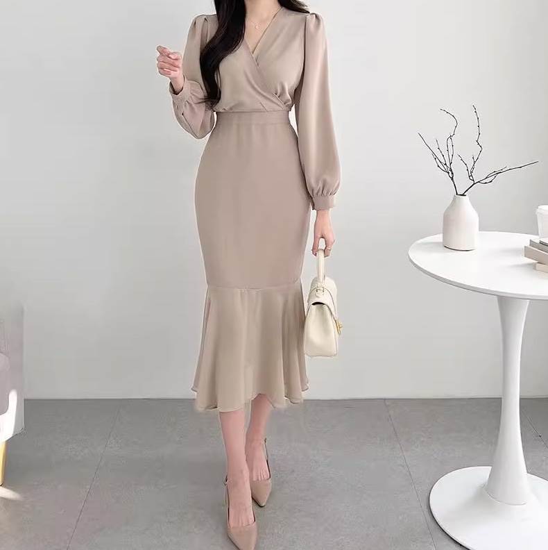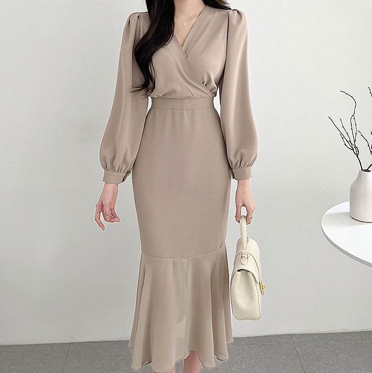 レディース ワンピース フレア ミモレ レディースファッション 期間限定割引クーポン ブラック アプリコット