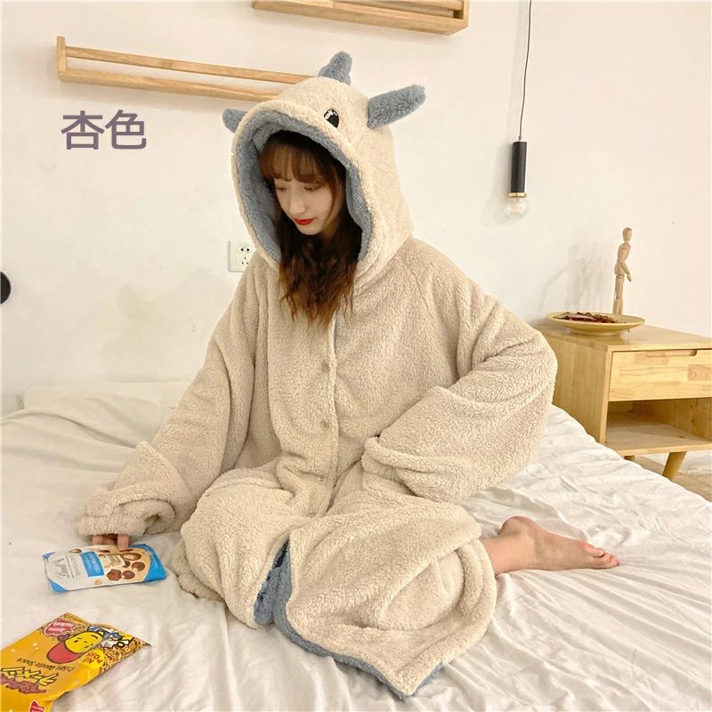 ガ 寝巻き ワンピース 冬 秋 ルーム ベージュ 杏色 パープル ピンク ブルー M L XL XXL