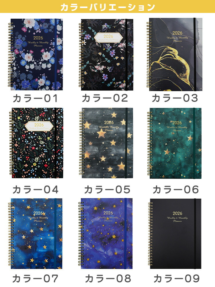 手帳 2026 1月始まり スケジュー 文房具 事務用品 手帳 ノート 手帳 続々登場 カラー01 カラー02 カラー03 カラー04 カラー05 カラー06 カラー07 カラー08 カラー09