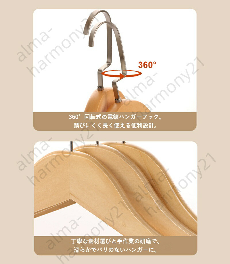 木製 ハンガー 天然木製ハンガー 5本 10本 20本フック360度回転 スーツハンガー 洋服ハンガー メンズハンガー ジャケットハンガー 型崩れ防止 木製ハンガー おしゃれハンガー