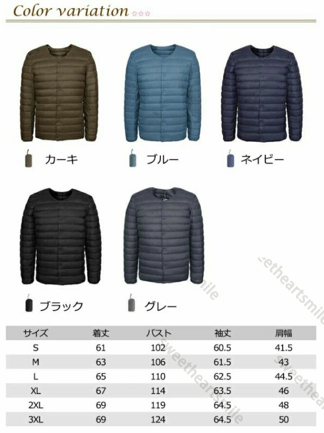 インナーダウン ジャケット メンズ 秋 メンズファッション 新作 ブラック グレー カーキ ネイビー ブルー S M L XL 2XL 3XL
