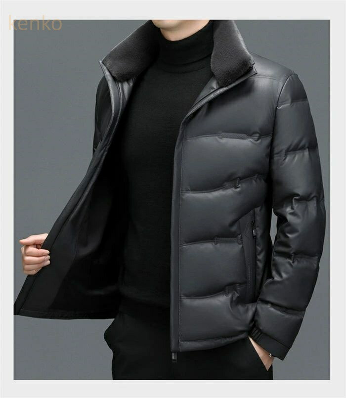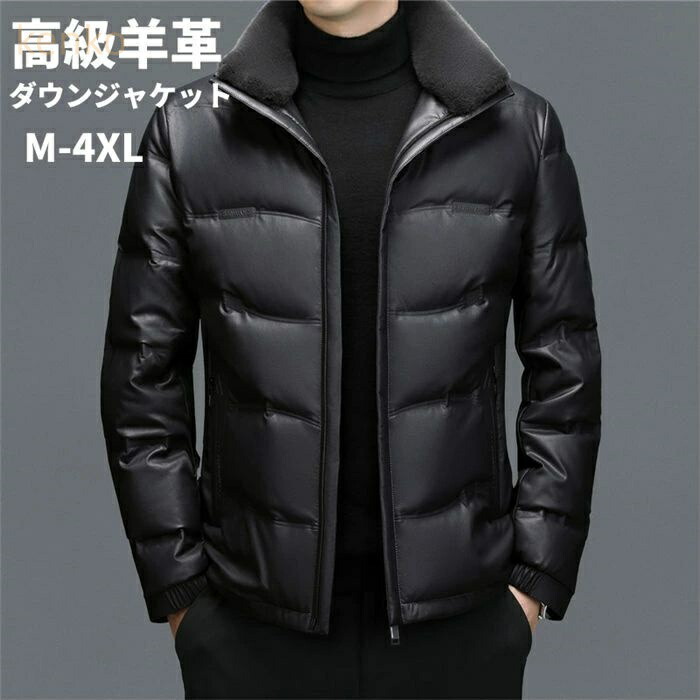 ダウンジャケット 本革 ジャケット ダウンコート メンズ 高級羊革 ラムレザー 取り外し可能 ファー襟 立て襟 アウター ショートコート 冬物 ダウン90% 保温 ビジネス 大きい 防寒