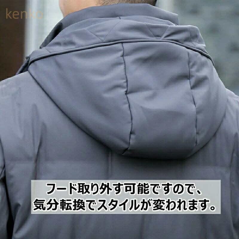 ダウンコート メンズ ビジネス ロング ミドル ダウンジャケット スーツ コート 90%ダウン フード取り外す可 暖かい アウター カジュアル おしゃれ 細身 防寒着 大きい 大人 キレイめ スリム