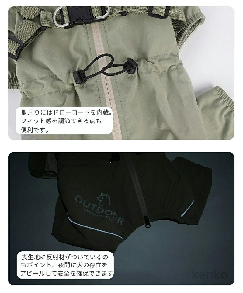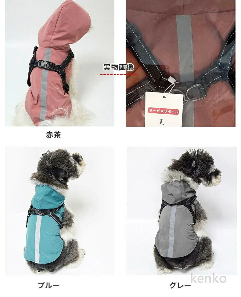 犬 猫 レインコート ハーネス一体型 ペット ペットグッズ 期間限定ポイントUP! 赤茶 ブルー グレー カーキグリーン グレーブルー カーキ S M L XL XXL XXXL
