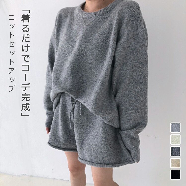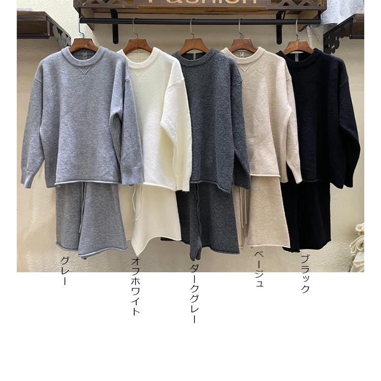ニットセットアップ レディース セータ レディースファッション 特集 オフホワイト グレー ブラック ダークグレー ベージュ
