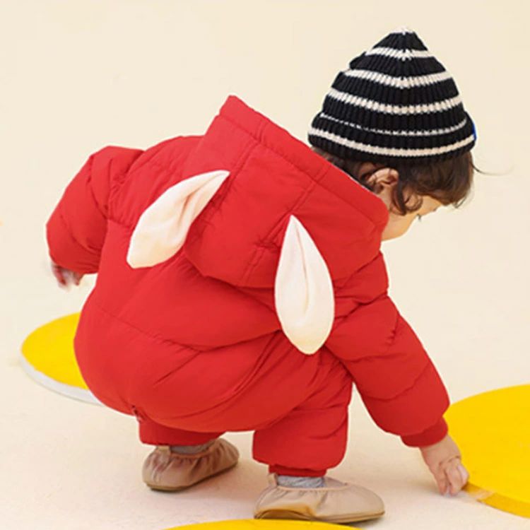 ジャンプスーツ 女の子 フード付き 新生児 撥水 男の子 柔らかい 厚手 ロンパース ダウンコート 中綿 ダウンジャケット