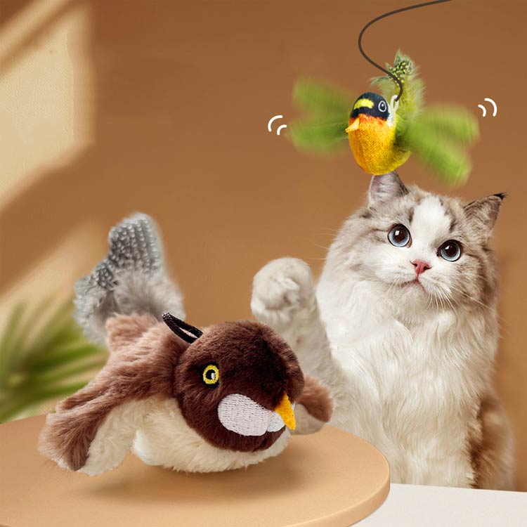 猫の 鳴く 動く 飛ぶ鳥 一人遊び 留守番 羽ばたく翼 自動 ピョンピョンバード鳥 小型 スズメ 猫おもちゃリアル