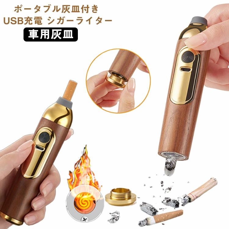 持ち運び灰皿 プラズマライター スティックライター 灰捨て簡単 ワンタッチ点火 車用灰皿 携帯灰皿 くるま用 灰皿 車 USB 密閉