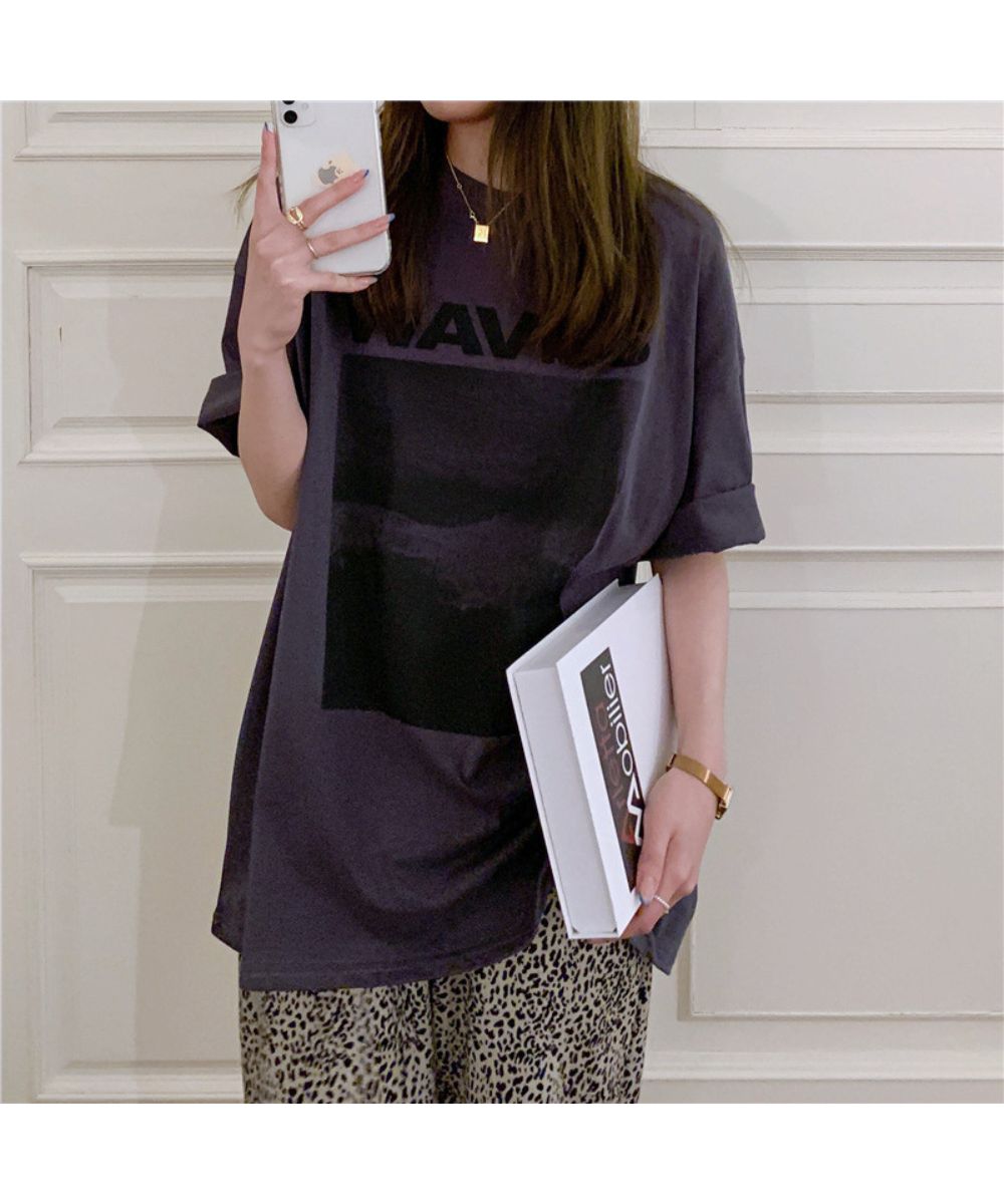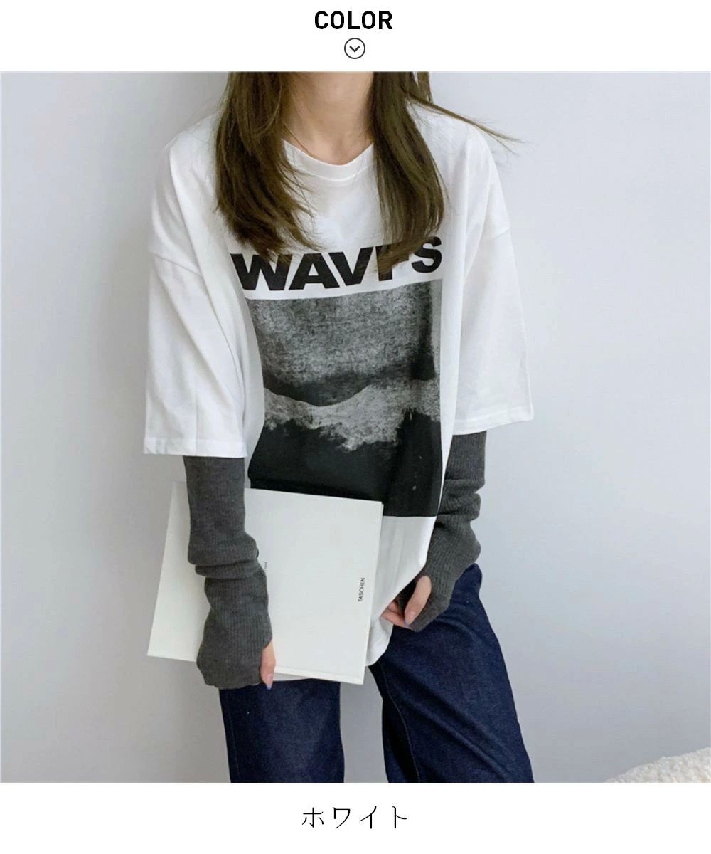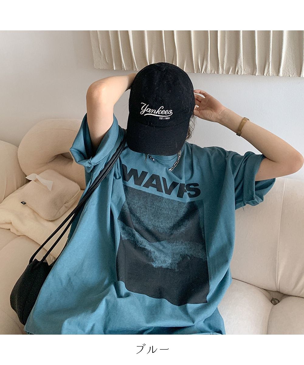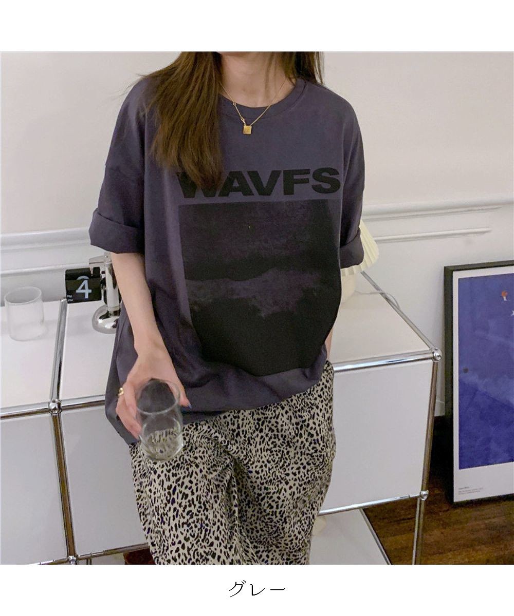 フロントプリント ビッグシルエットが可 トップス Tシャツ カットソー 人気 ホワイト グレー ブルー M L XL