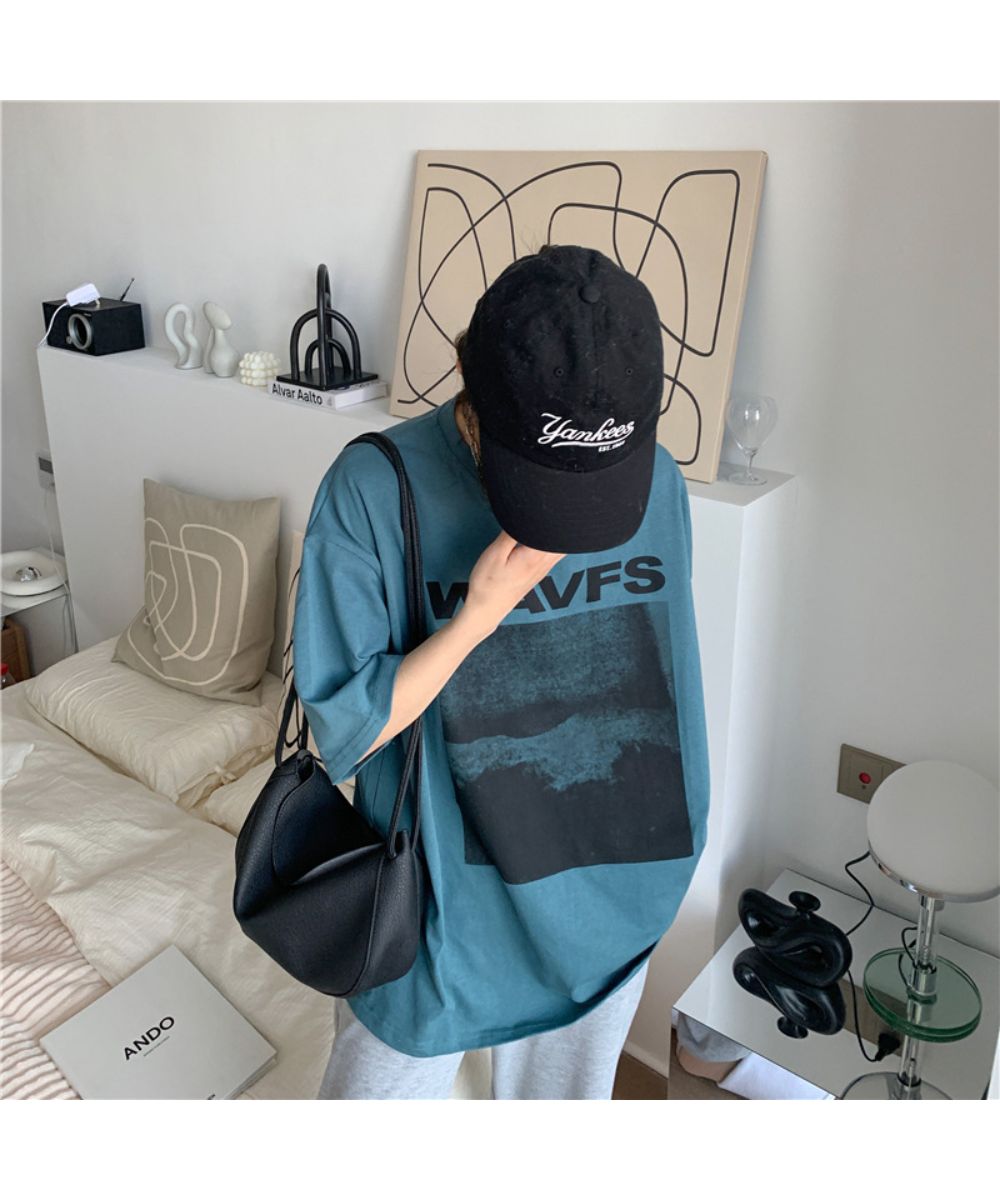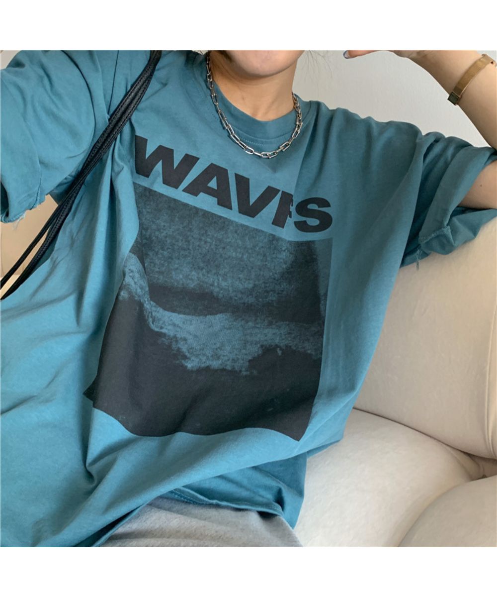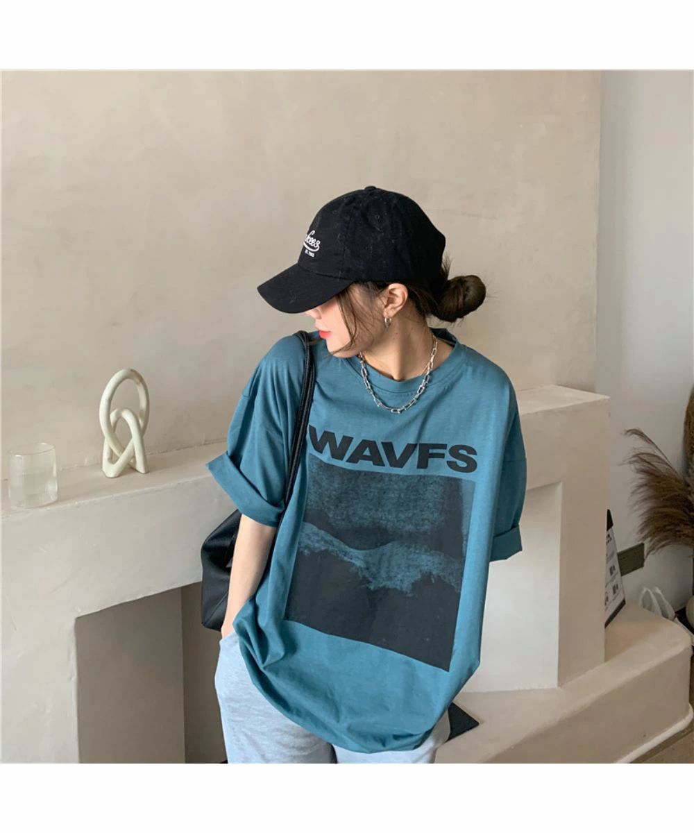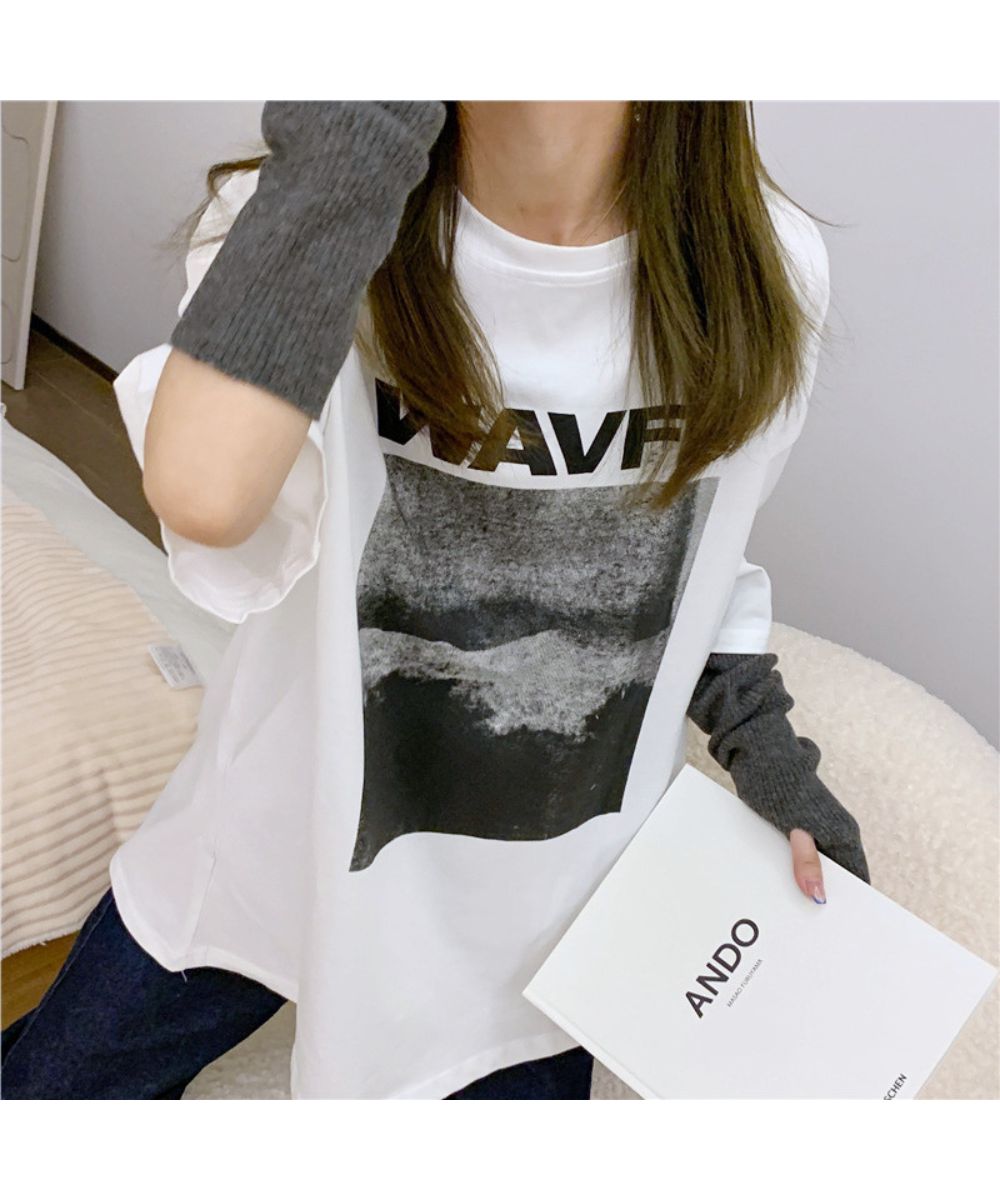 フロントプリント ビッグシルエットが可 トップス Tシャツ カットソー 人気 ホワイト グレー ブルー M L XL