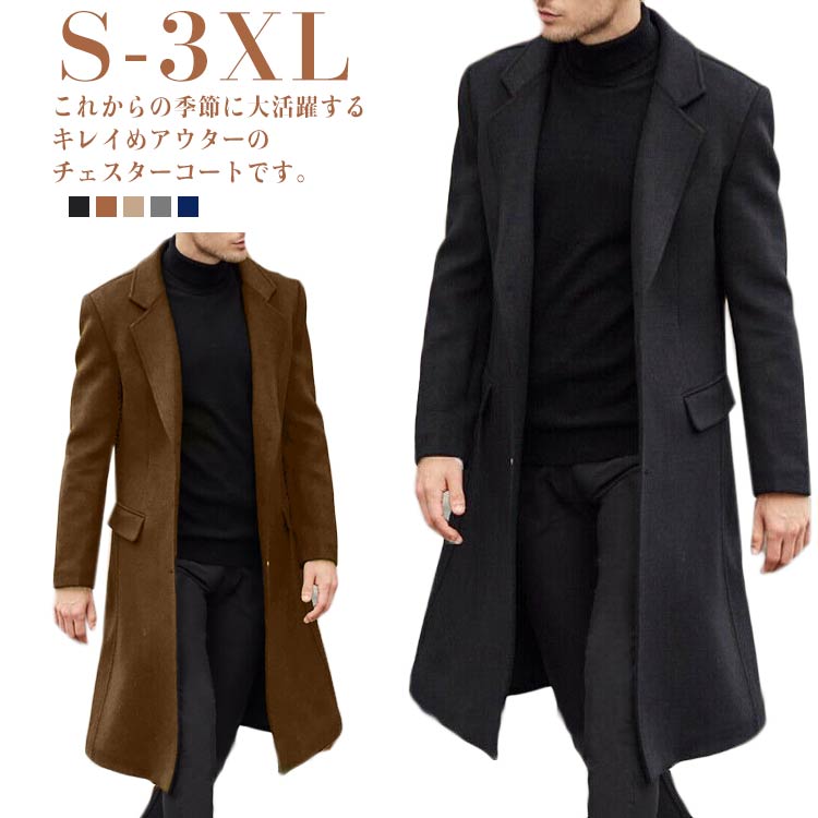 大きいサイズ チェスターコート 上品 コート ジャケット 期間限定ポイントUP! ブラック グレー ベージュ ブラウン ネイビー S M L XL 2XL 3XL