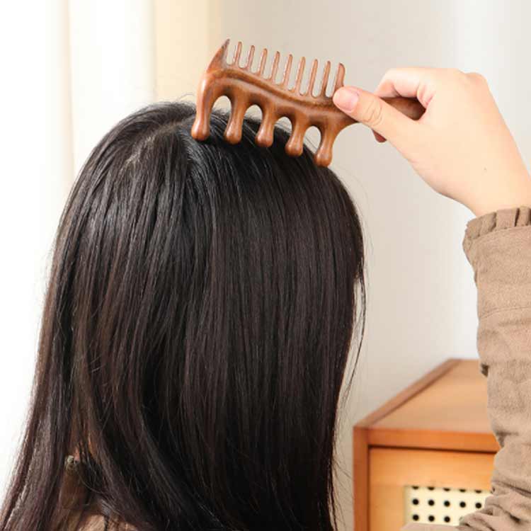 檀木 ヘアブラシ ツボ押し 櫛 ヘアコ