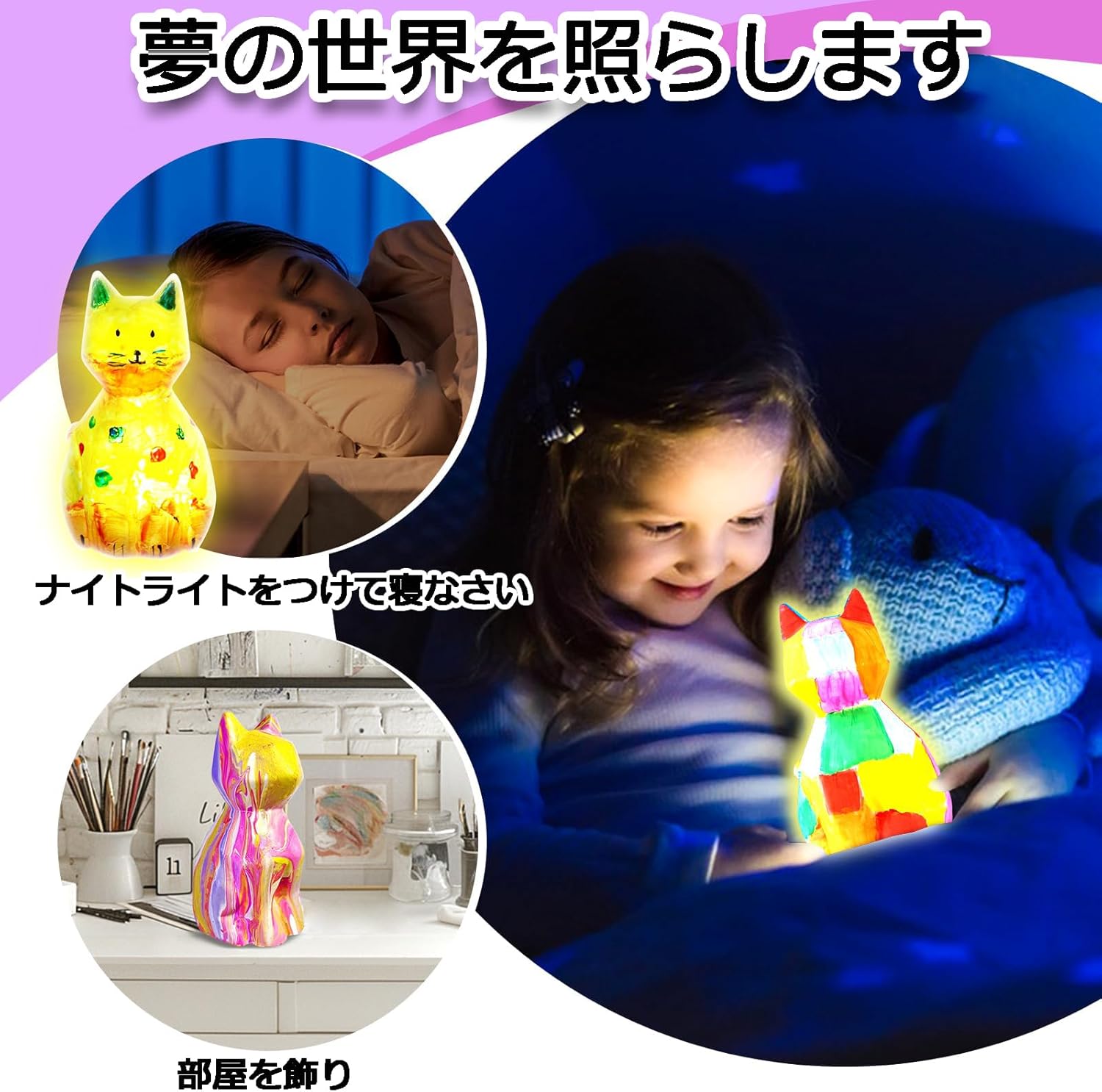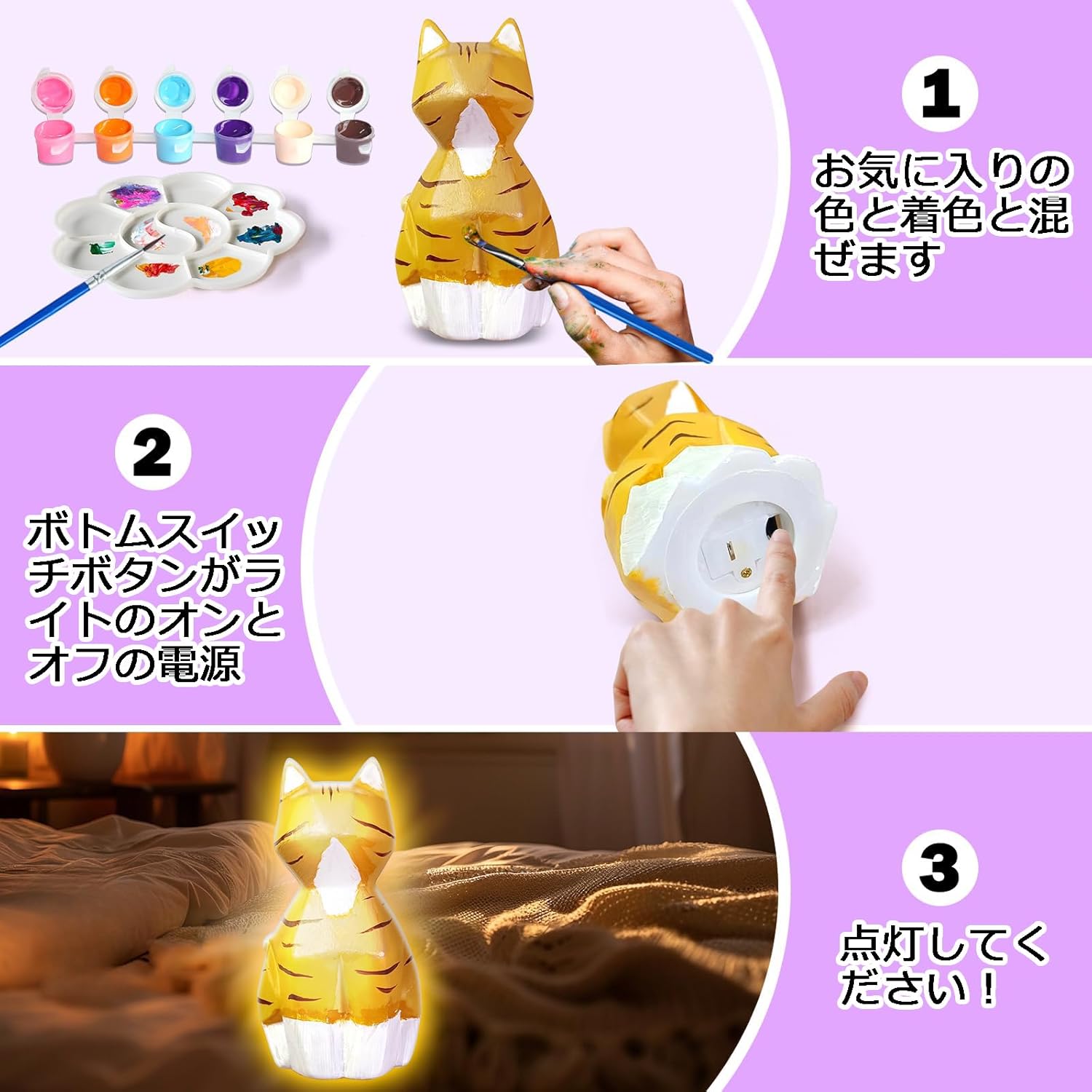 描ける 動物ランプ 猫ランプ 恐竜 ユニコーン ネコ ウサギ 犬 フクロウ クマ ランプ お絵描きキット 絵の具セット 工作キット DIY 手作りキット ナイトライト 子供 メイキン 間接照明