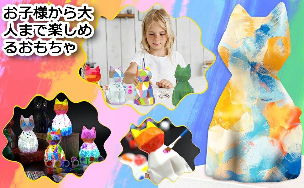 「色彩認識を育てるメイキングトイ」このお絵かきおもちゃには12色の絵の具が含まれており、子どもの色彩認識力を育て、絵を描く楽しさも広がります。動物好きなお子様にとって、自分で描いた動物ランプがお部屋に灯ることで、より楽しい空間になるでしょう。例えば、ねこちゃんを描いたり、好きな色を塗ったりして、癒しのひとときを作り出せます。
